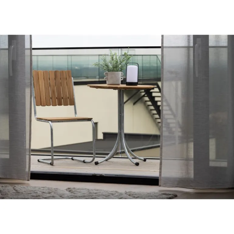 Mød Holmsund, det perfekte cafébord til dit udendørsliv. Med sit elegante design er dette runde bord en smagfuld kombination af funktionalitet og stil. Teakbordpladen giver ikke kun en naturlig og varm følelse, men er også kendt for sin holdbarhed og modstandsdygtighed over for vejrforhold. Hver morgenmad eller kop kaffe bliver til en nydelsesfuld stund, når du placerer dette cafébord på din balkon. Zinkrammen tilføjer ikke kun et moderne touch, men tilbyder også stabilitet og robusthed. Holmsund er skabt til at være både smukt og praktisk på samme tid. Inviter solens stråler og skab din egen oase på balkonen med Holmsund. Uanset om du vælger at nyde en afslappende morgenmad eller en kop te i eftermiddagssolen, vil Holmsund ledsage dig med sin charme og pålidelighed. Med Holmsund cafébordet kan du skabe mindeværdige øjeblikke og nyde hver udendørs oplevelse. Tilføj et strejf af luksus til dit udendørsliv med dette smukke og funktionelle cafébord.