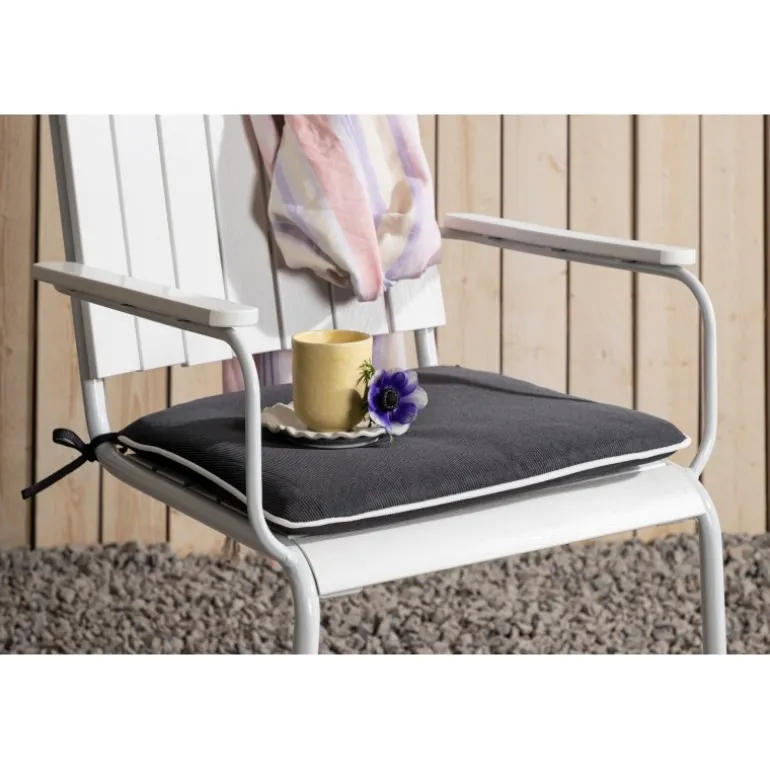 Enkel og praktisk grå sædepude tilpasset vores stole “Holmsund”. Puden er udstyret med snore på siderne, som hjælper med at holde den ordentligt på plads. Nyd sommeren – pæn og komfortabel!