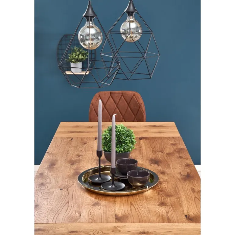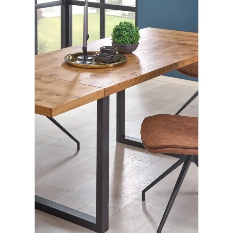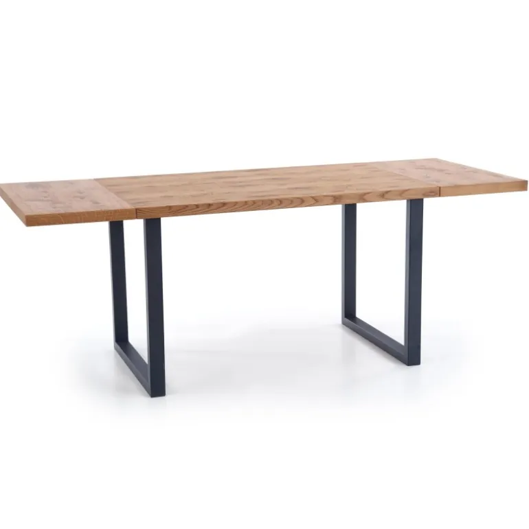 HORUS Spisebord med udtræket er den perfekte løsning til ethvert moderne hjem. Med dimensioner på 126÷206/80/76 cm kan bordet nemt udvides for at imødekomme flere gæster. Bordpladen er lavet af finérplade med massivt træ på kanterne, og benene er fremstillet af pulverlakeret stål. FARVE: Bordplade i lys eg, ben i Sort. Oliebehandlet bordplade kræver særlig vedligeholdelse, detaljer findes i manualen.