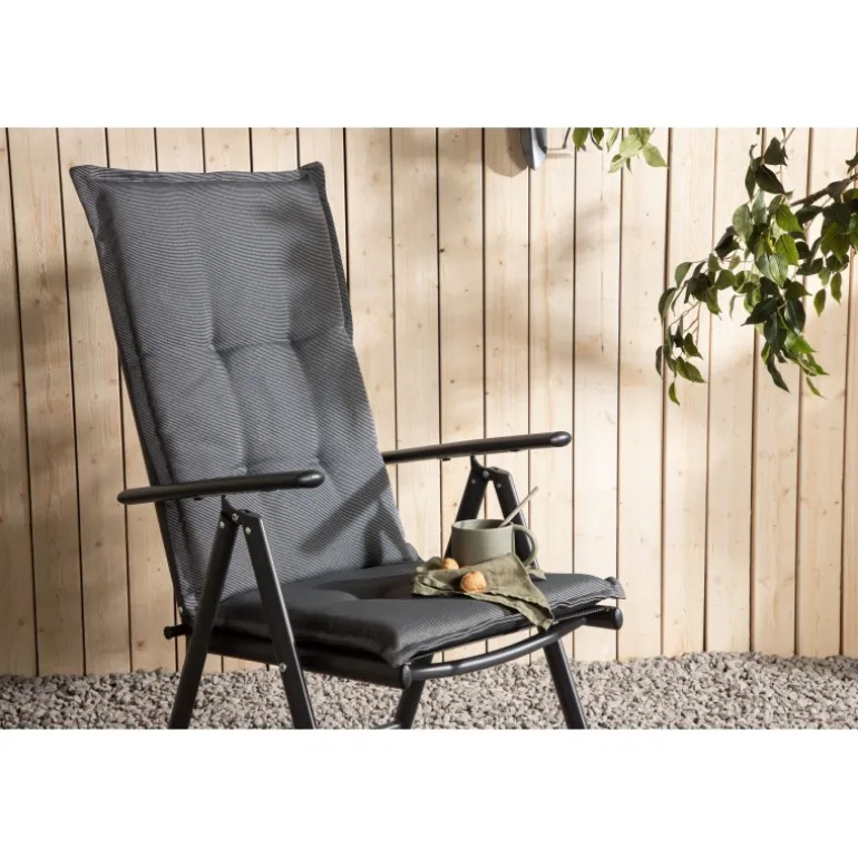 Sid ekstra komfortabelt i din udendørsgruppe! Denne grå stolehynde er tilpasset vores klapstole. På bagsiden er der to vedhæng, som hjælper hynden med at blive ordentligt på plads. Forlæng de dejlige måltider, når du har mulighed for at sidde godt i lang tid!