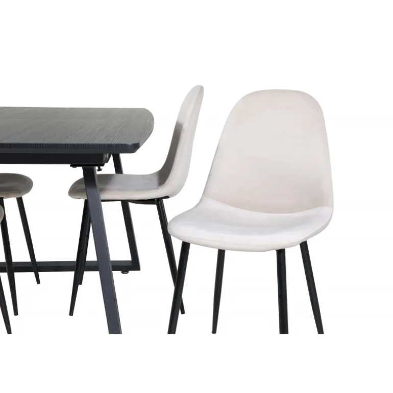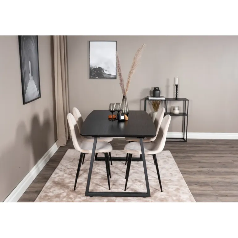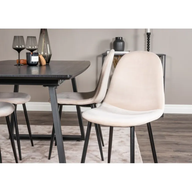 Vores populære spisebord, Inca, med elegant sort bordplade kombineres perfekt med komfortable fløjlsstole fra Polar-serien. Et stilfuldt Spisebordssæt i tidløs farveskala og med en moderne følelse – lige så godt til en hyggelig hverdag som til en dejlig fest.
