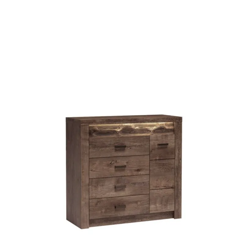 Oplev elegance og funktionalitet med INDIANAPOLIS kommode I17 i mørk asketræ. Denne stilfulde kommode kombinerer moderne design med praktiske opbevaringsløsninger, perfekt til ethvert hjem. Fremstillet af lamineret spånplade med ABS kantfiner og en bagside af HDF spånplade, sikrer den holdbarhed og langvarig brug. De metalliske håndtag og hængsler tilføjer et moderne touch. Der er også mulighed for at tilføje LED-belysning for ekstra stil og funktionalitet.