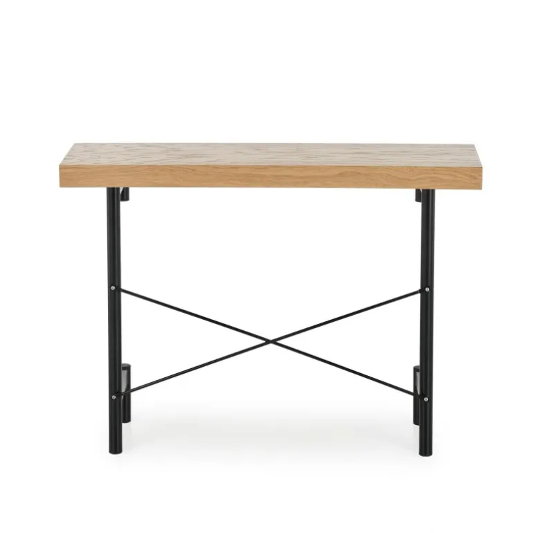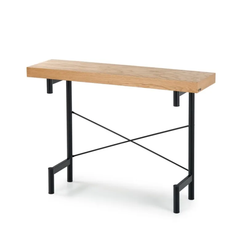 Oplev den perfekte kombination af stil og funktionalitet med INFERNO bordet i naturlig eg og Sort. Dette elegante bord er designet til at passe ind i ethvert moderne hjem. Med dimensionerne 106x30x77 cm og konstrueret af MDF med naturlig finer (eg) og pulverlakeret stål, tilbyder det både holdbarhed og en tidløs æstetik. Toppen i naturlig eg skaber en varm og indbydende atmosfære, mens de Sorte ben giver en elegant kontrast og stabilitet. Perfekt til stuen, kontoret eller entréen – INFERNO bordet er et alsidigt og stilfuldt valg.