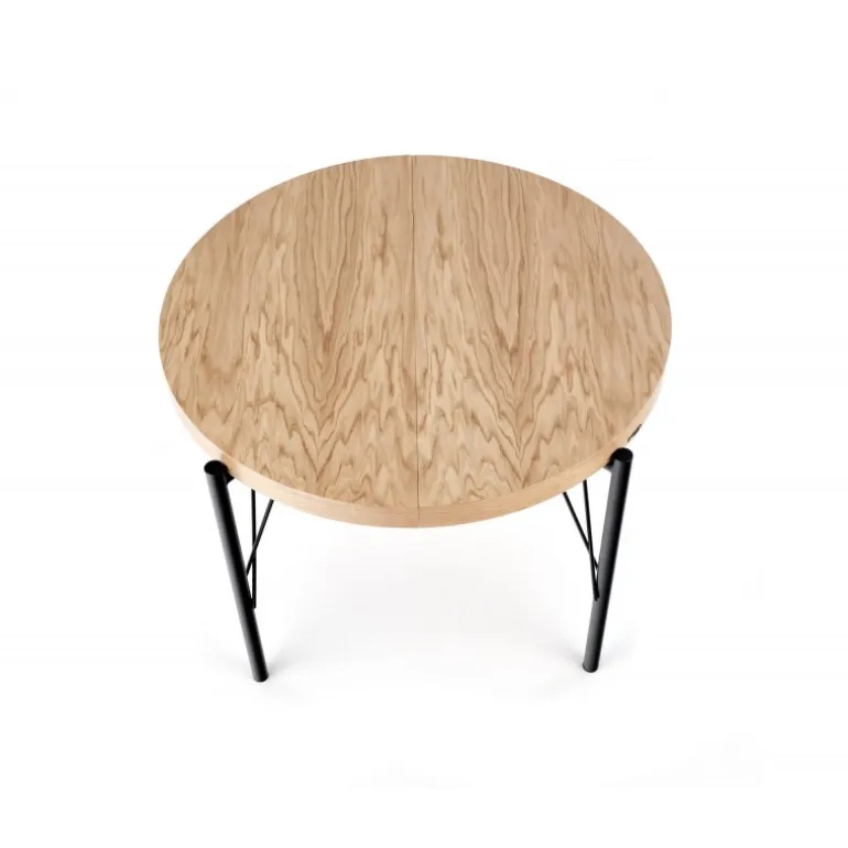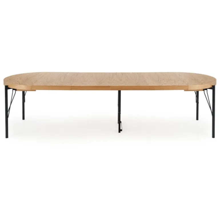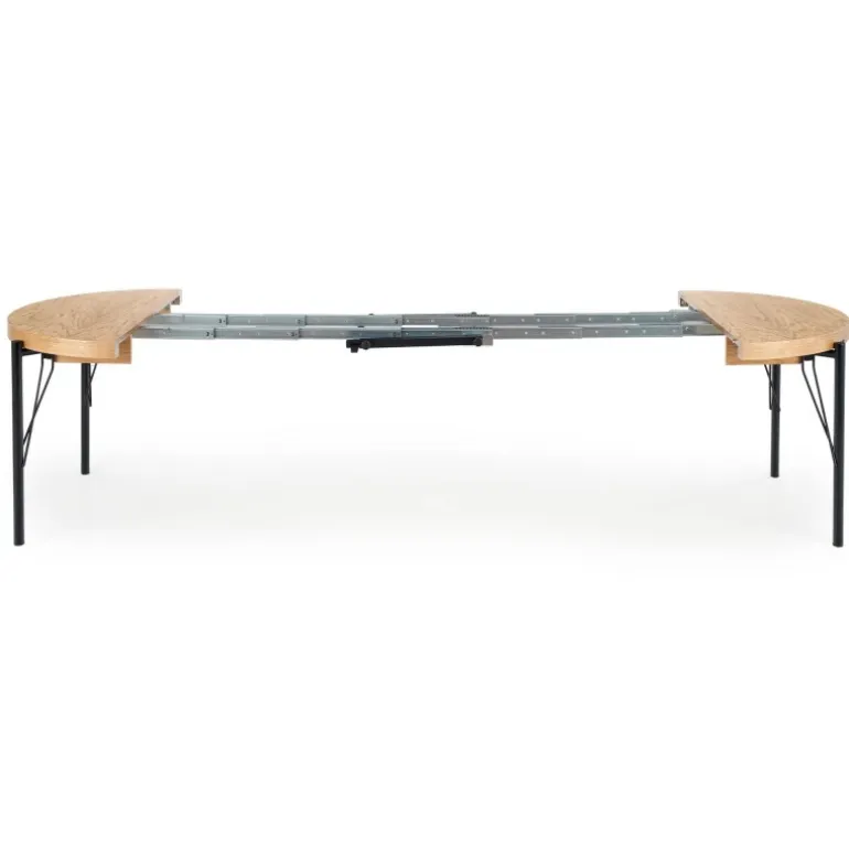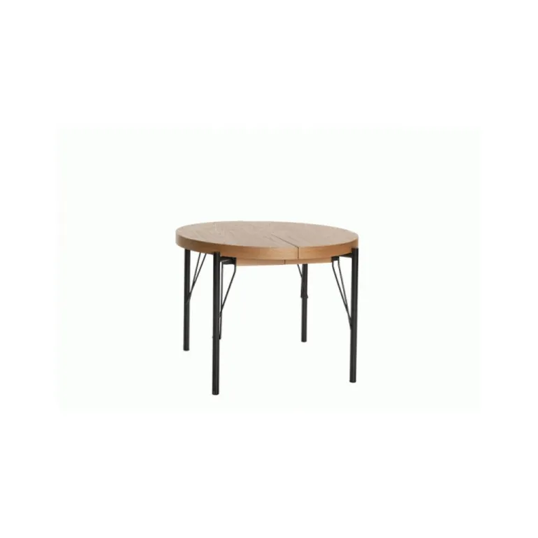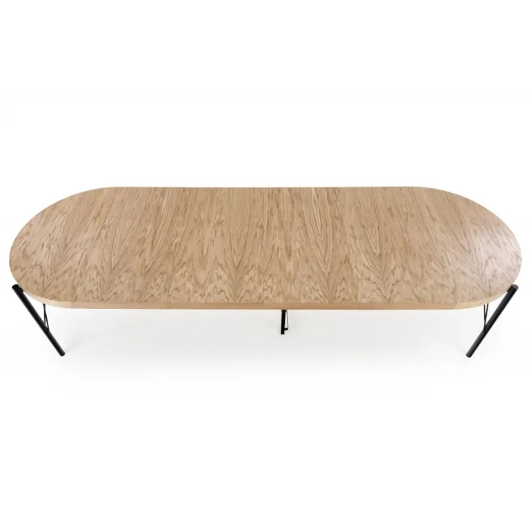 Oplev INFERNO Spisebord med udtræk – et stilfuldt og funktionelt møbel til dit hjem. Med dimensionerne 100-300/100/76 cm kan dette bord nemt udvides for at rumme flere gæster. Fremstillet af MDF med natur eg finer og pulverlakeret stål, kombinerer det holdbarhed med et elegant design. Bordpladen i natur eg og de Sorte ben skaber et moderne og tidløst udseende, der passer perfekt til enhver indretning.