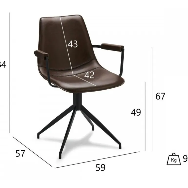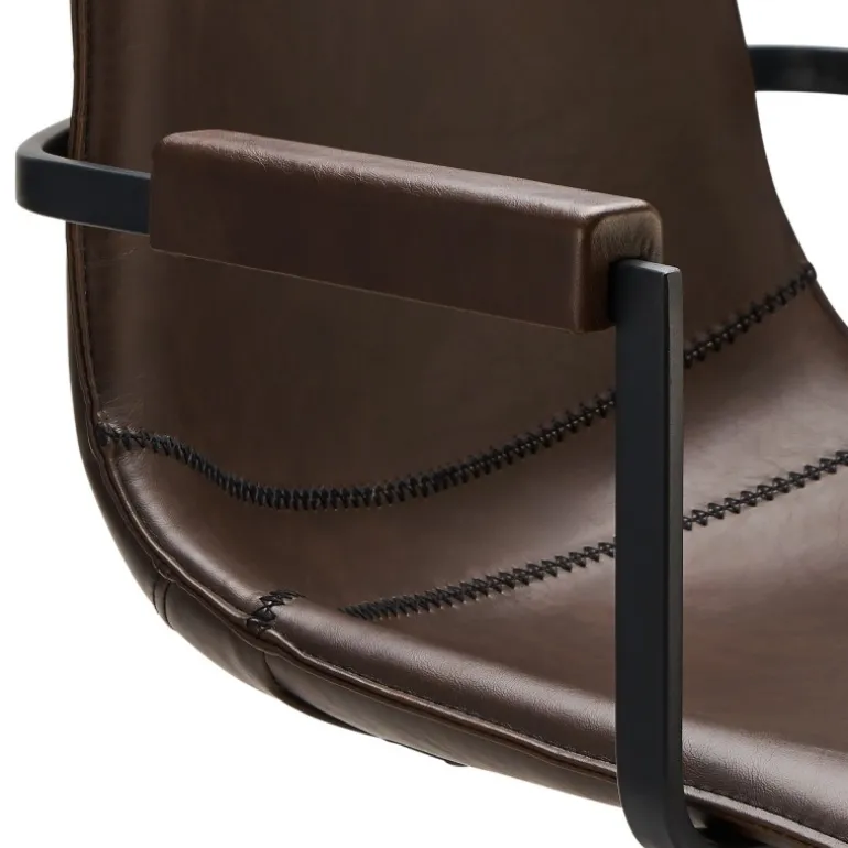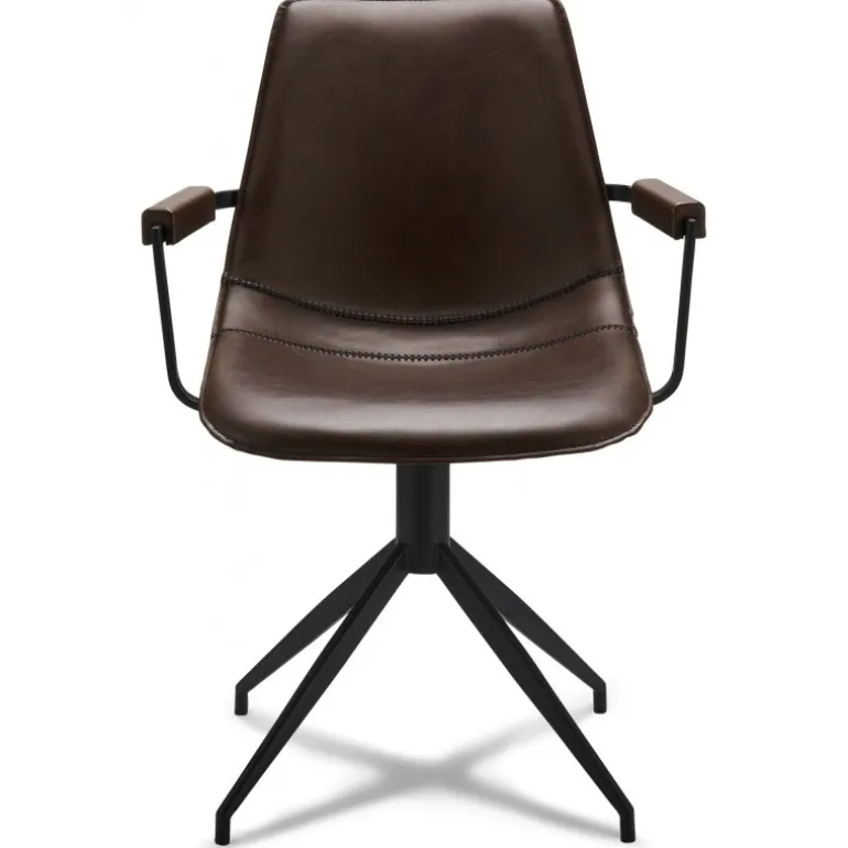 Isabel er en blød og behagelig spisebordsstol, der er polstret i både sæde og ryg slidstærkt kunstlæder. Stolen er designet i mørkebrunt PU læder, og har nogle dejlige puder på armlænet, så man kan sidde behagelig. Isabel kan med den praktiske drejefunktion, bruges både som spisebordsstol og som kontorstol.