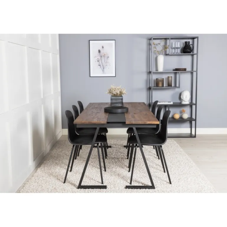 Spisebordet Jakarta i klassisk stil. Til bordet følger vores populære spisestole Arctic, en kombination, der skaber en varm, naturlig og indbydende følelse for rummet. Udvid dine middagsinvitationer og undgå bekymringer om at få plads til alle. Dette sæt er perfekt til at bringe elegance og funktionalitet til din spisestue.