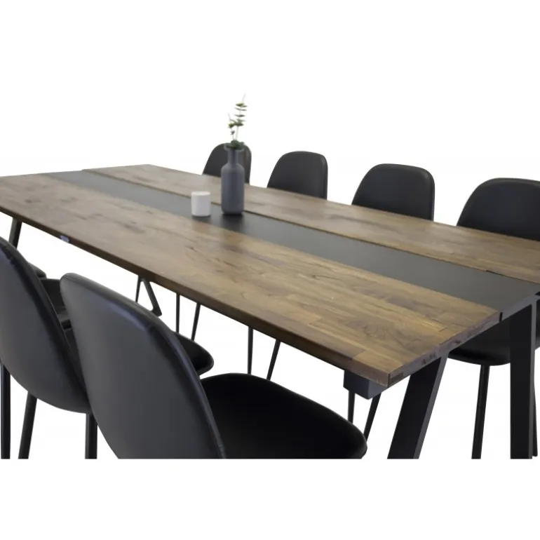 Oplev det elegante Jakarta Rektangulær Spisebordssæt med en smuk teaktræsbordplade og en dekorativ metalplade i midten. Dette sæt inkluderer de tidløse Polar stole, som skaber en perfekt kombination af moderne og hyggelig stil. Perfekt til enhver indendørs spisestue, dette sæt tilføjer både funktionalitet og æstetik. Teaktræ og stål materialer sikrer holdbarhed og et luksuriøst udseende.