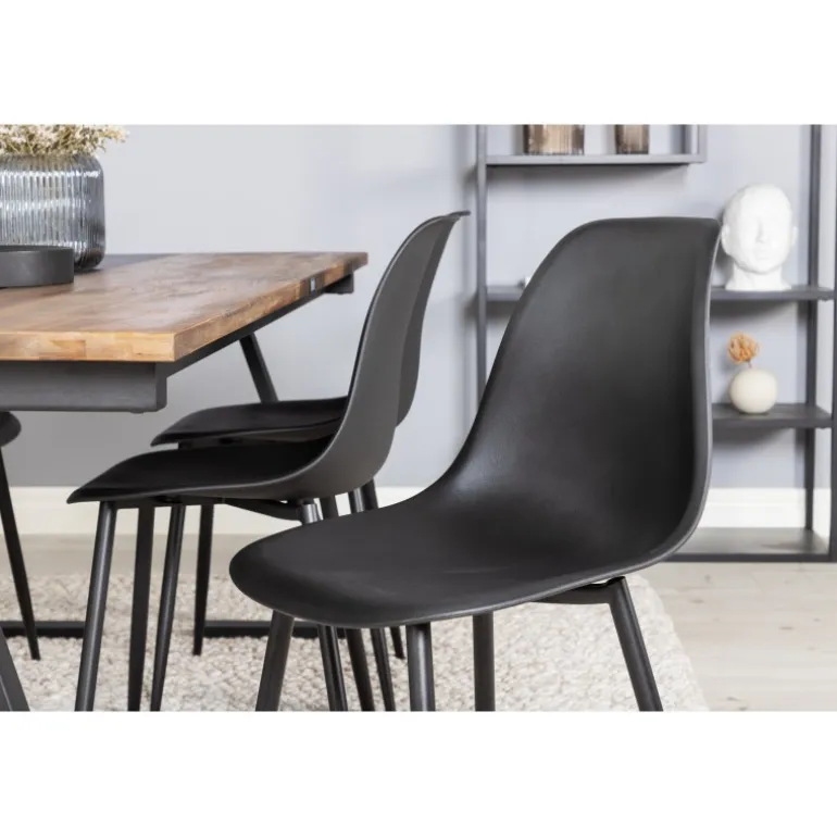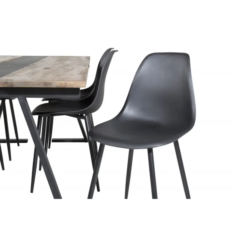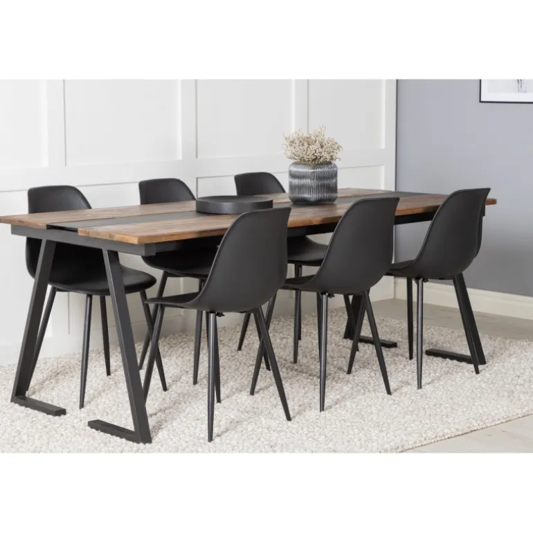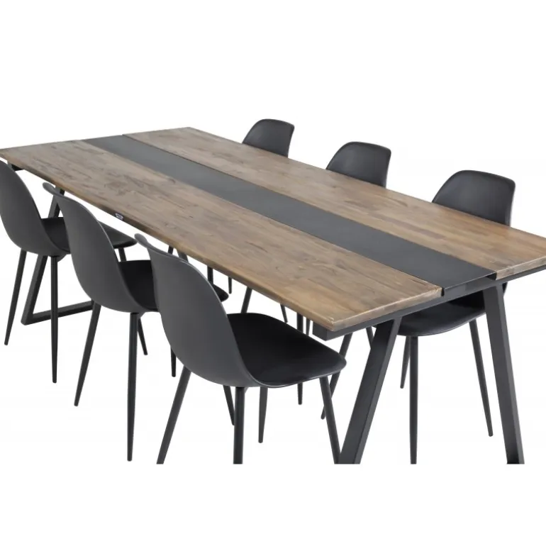 Dette spisebordssæt er både stilfuldt og tidløst i sin farveskala! Spisebordet Jakarta kombineret med spisestolene Polar giver en luksuriøs og elegant følelse – udvid dine middagsinvitationer uden bekymring for pladsproblemer. Lavet af høj kvalitet teaktræ, plastik, og stål, og kræver samling ved modtagelse. Fås i farverne sort og natur.