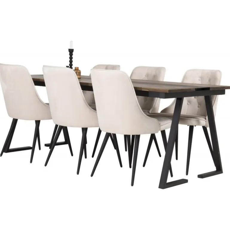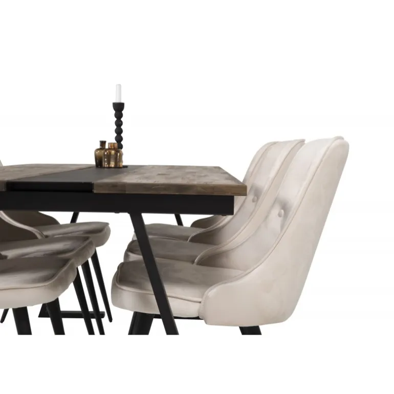 Vores moderne spisebord Jakarta sammen med komfortable spisestole i Velvet-serien. Her får du en Spisebordssæt, der straks udstråler luksus og elegance. “Dress up or down” din Spisebordssæt med anden indretning rundt om, lige så godt til hverdagen som til fest!