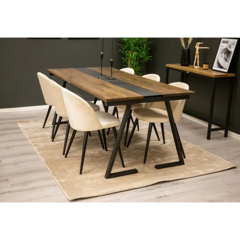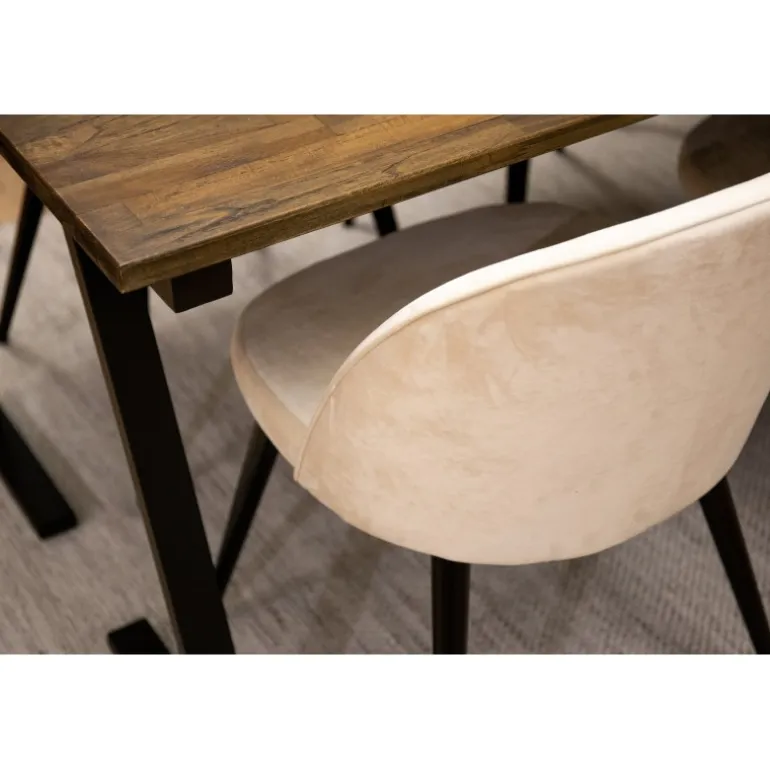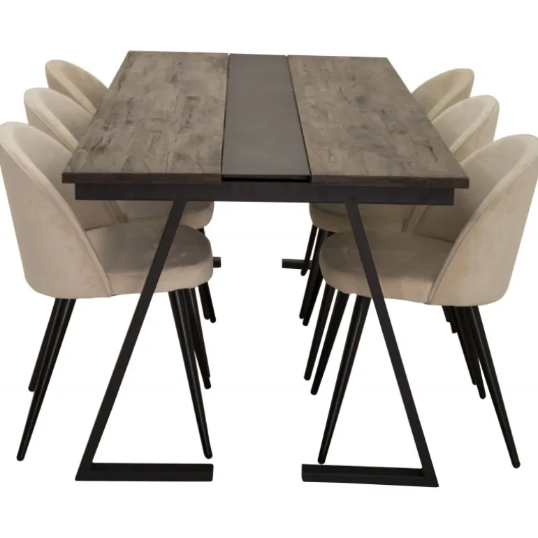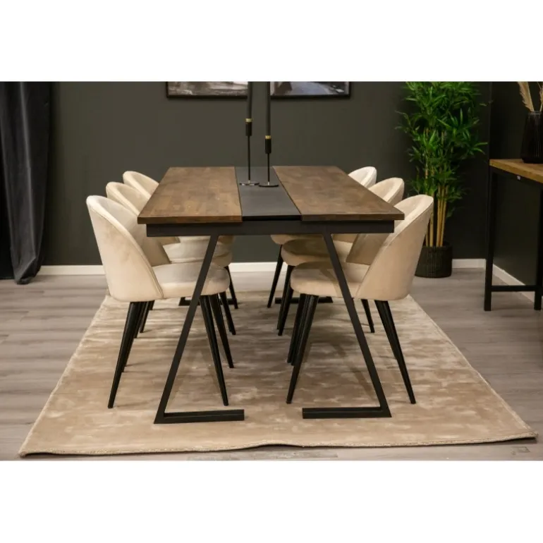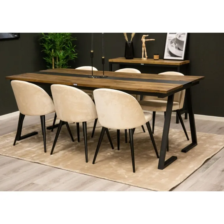 Kombinationen af forskellige farver og materialer skaber ofte en fantastisk succes. Med vores spisebord Jakarta og vores spisebordsstole i velour får du en kombination, der er moderne, hyggelig og tidløs! Dette sæt er perfekt til enhver spisestue og kombinerer teaktræ og stål for et elegant og robust design. Stolene er fremstillet af bøgetræ, skum og stål, og de tilbyder både komfort og stil.