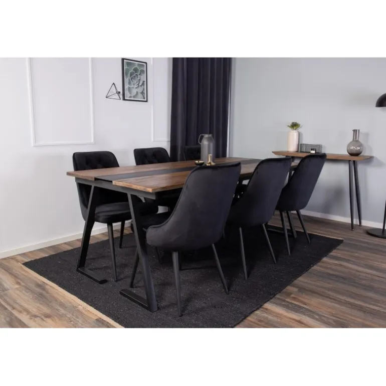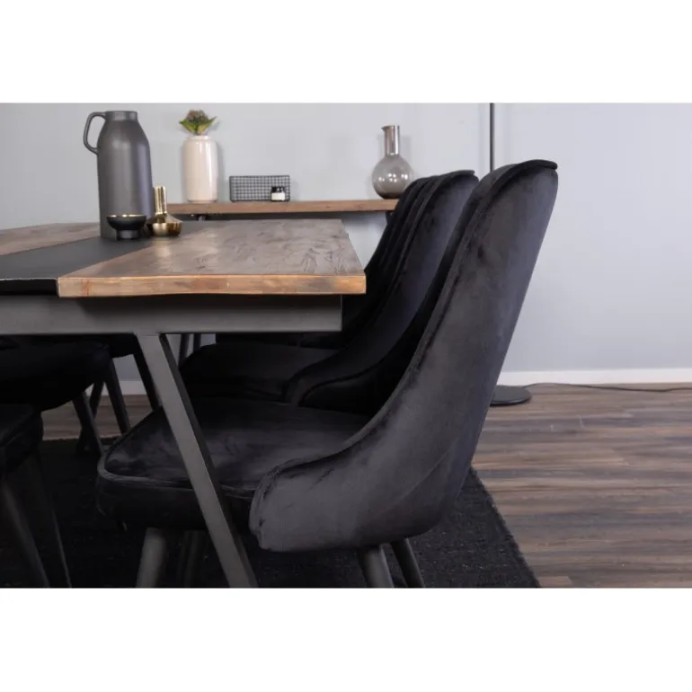 Det klassiske spisebordssæt Jakarta passer perfekt til de fleste husstande! Spisebordet Jakarta sammen med stolene i Velvet-serien er skabt til dem, der ønsker at skabe en hyggelig og moderne atmosfære i hjemmet. Teakbordpladen kombineret med stellet af stål og krydsfinerstole sikrer både holdbarhed og stil. Dette sæt er ideelt til familiesammenkomster og middage med venner.