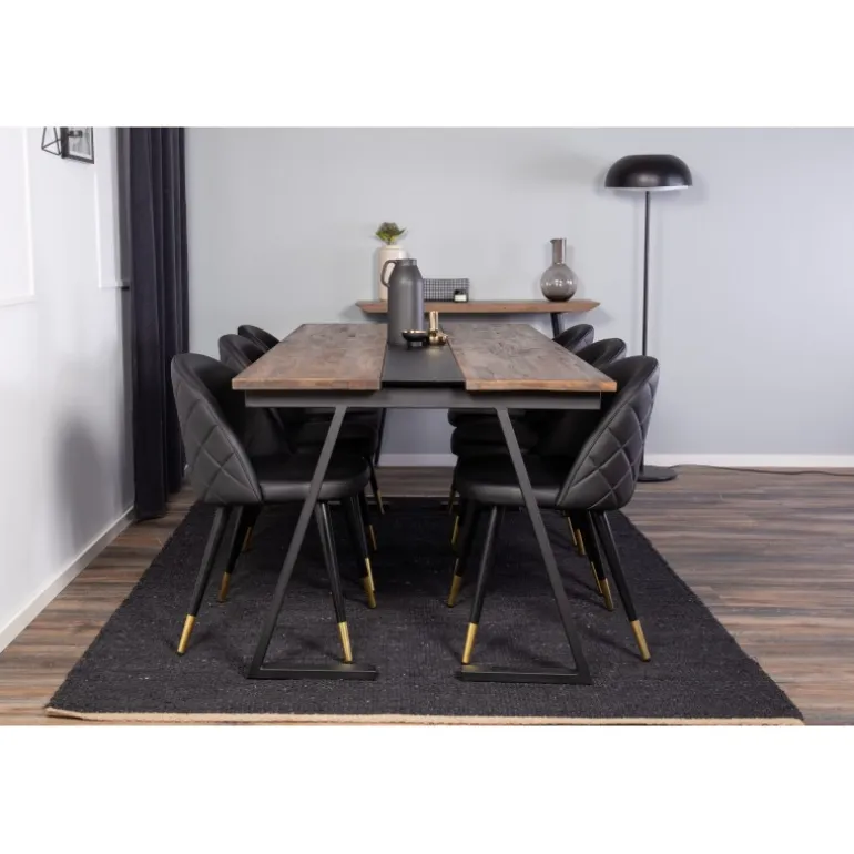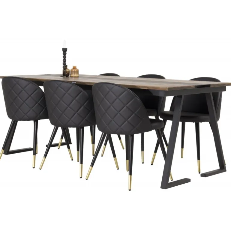 Spisebordet Jakarta i et slankt design, sammen med spisestole Velvet – den perfekte kombination for dem, der ønsker en trendy Spisebordssæt. Stolene har en høj siddekomfort, der inviterer til lange og vidunderlige øjeblikke med socialt samvær!