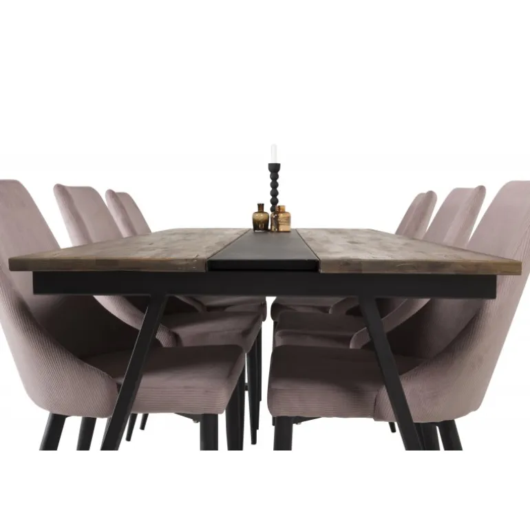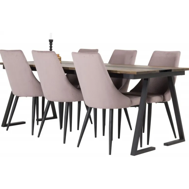 - Moderne Design: Jakarta spisebord med teakbordplade og Leone spisestole i støvet pink.