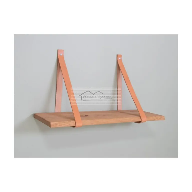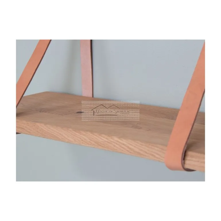 Hylde i natur olieret egetræ, kan vægmonteres med læderstropper.