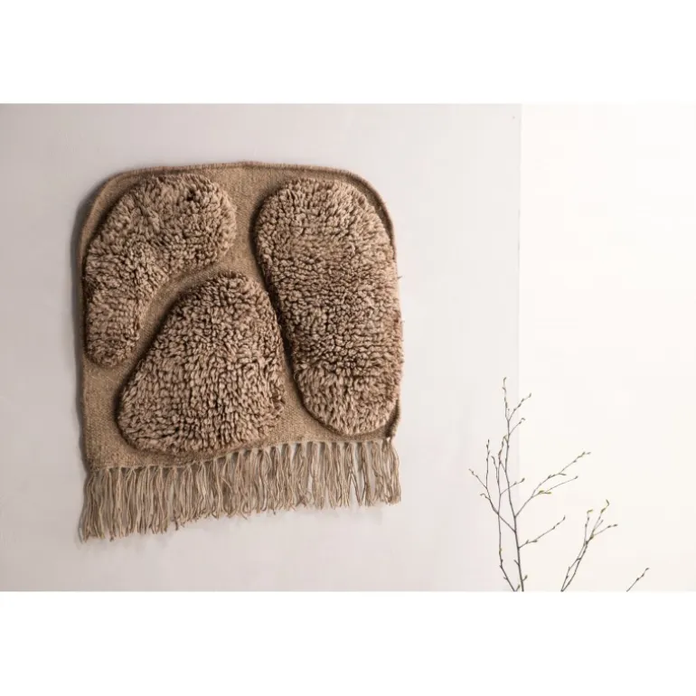 Klæd dine vægge i en boheme-stil med disse slanke ornamenter fra Jakobso-serien! Med et afrundet design og frynser i bunden giver dette ornament en varm og blød følelse til rummet. Vævet med en grovere struktur og et fluffy mønster, der tilføjer en lækker dimension til ornamentet. Jakobso fås i forskellige farver, og denne har en smagfuld jordfarvet nuance i brun. Hæng den op i stuen eller soveværelset for at skabe et nyt blikfang på dine vægge!