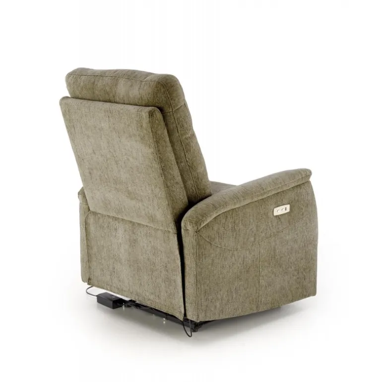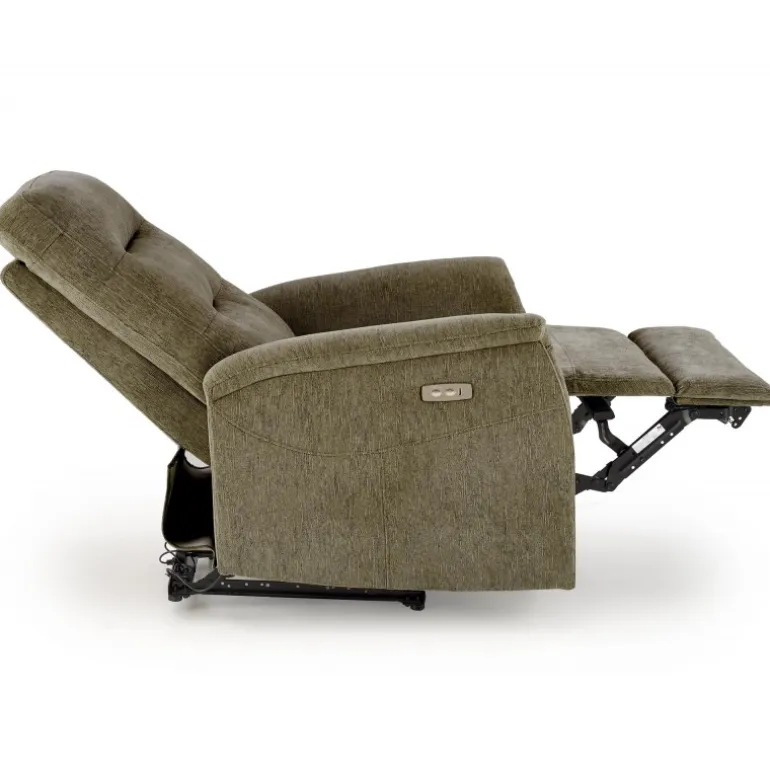 Oplev ultimativ komfort med JAMAL lænestolen i en smuk olivenfarve. Denne lænestol er designet med en elektrisk foldningsfunktion og en praktisk USB-stik, der gør det nemt at oplade dine enheder, mens du slapper af. Den er betrukket med højkvalitetsstof, ODIN#77, der sikrer både holdbarhed og et stilfuldt udseende. Med dimensioner på 80/90-160/105/47 cm tilbyder JAMAL lænestolen rigelig plads og støtte for optimal afslapning. Perfekt til enhver stue, denne lænestol kombinerer funktion og æstetik på bedste vis.