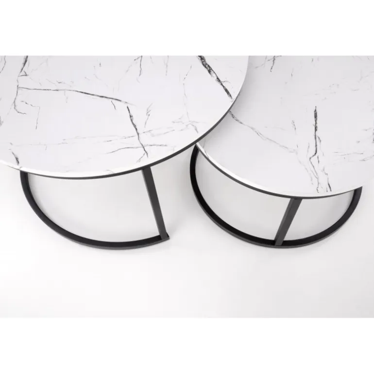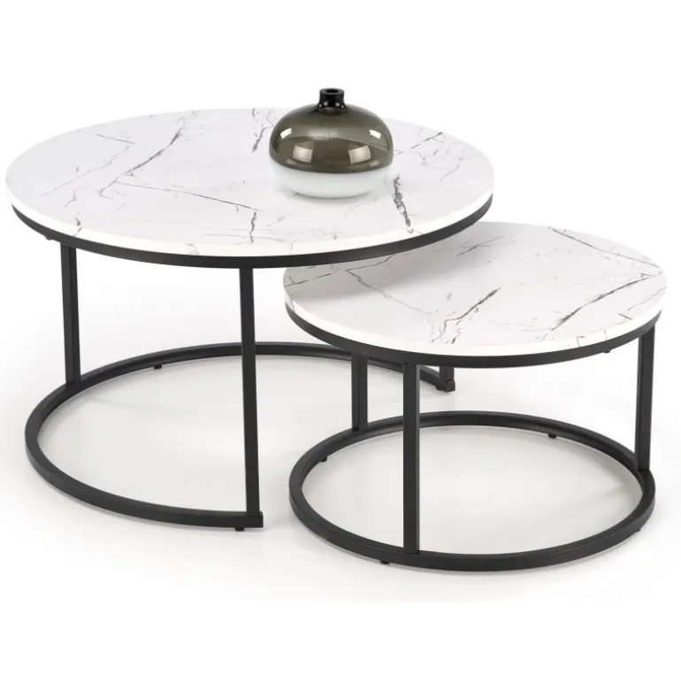 Opgrader din stue med dette JAVA sæt af 2 sofaborde i elegant hvid marmor og Sort design. Bordene er fremstillet af lamineret MDF og pulverlakeret stål for ekstra holdbarhed og stil. Med dimensioner på 79/47 cm og 59/37 cm passer disse borde perfekt sammen eller hver for sig, hvilket giver dig fleksibilitet i din indretning. Perfekt til moderne hjem, hvor funktion og æstetik går hånd i hånd.