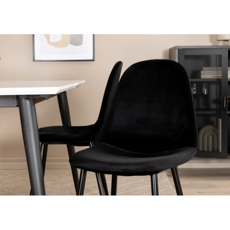 - Komfortable stole: Polar spisestole med blødt velour sæde og stabilt metalstel for ekstra komfort.