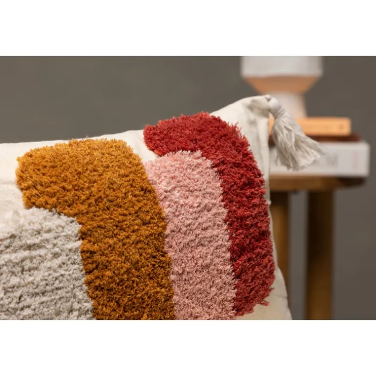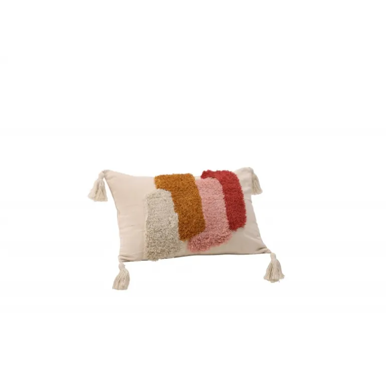 En lang pudevår, der fanger blikket! Joline pudevår har en stilfuld base i hvid og et lækkert mønster i tuftet materiale i farverne hvid, brun, pink og rød. Betrækket har også kvaster i hvert hjørne, hvilket bidrager til et mere legende udtryk. Polyester og bomuldsblandingen er både holdbar og smidig. Dette er virkelig et pudevår, der udstråler kunst og modebevidsthed. Sæt et personligt præg på din indretning med en farverig pude, der skiller sig ud!