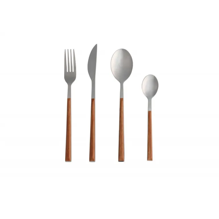 Bestik fra Jubie-serien er en harmonisk blanding af naturlig skønhed og moderne elegance. I en smuk farvekombination af sølv og brun skaber disse redskaber en beroligende atmosfære ved hvert måltid. Håndtagene er lavet af ABS-materiale med træimitation, hvilket giver en varm og organisk følelse til hver gaffel, kniv og ske. Den jordnære farvepalet skaber en følelse af ro, og de afrundede kanter tilføjer en blødhed, der forbedrer hele borddækningen. Fremstillet med præcision og holdbarhed, er bladene lavet af stål, hvilket giver bestikket pålidelig kvalitet og funktionalitet. Jubie-bestik er ikke blot køkkenredskaber; de er kunstneriske detaljer, der løfter din spiseoplevelse. Uanset om det er til et simpelt hverdagsmåltid eller en festlig lejlighed, vil Jubie-bestik være den perfekte ledsager. Skab en rolig og indbydende atmosfære ved dit spisebord med disse redskaber, der kombinerer tidløst design med et strejf af naturlig skønhed. Anbefales ikke til opvaskemaskine.