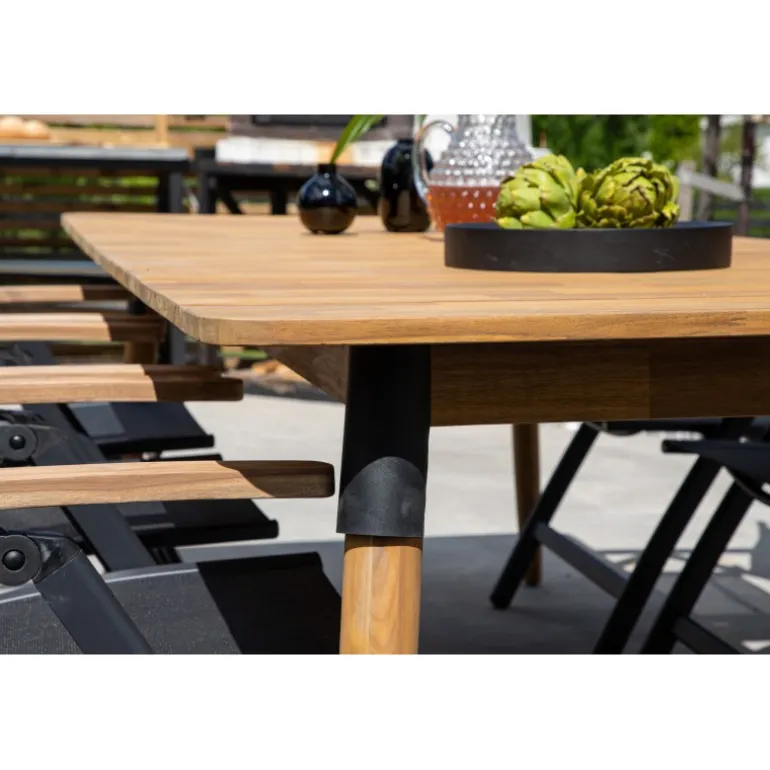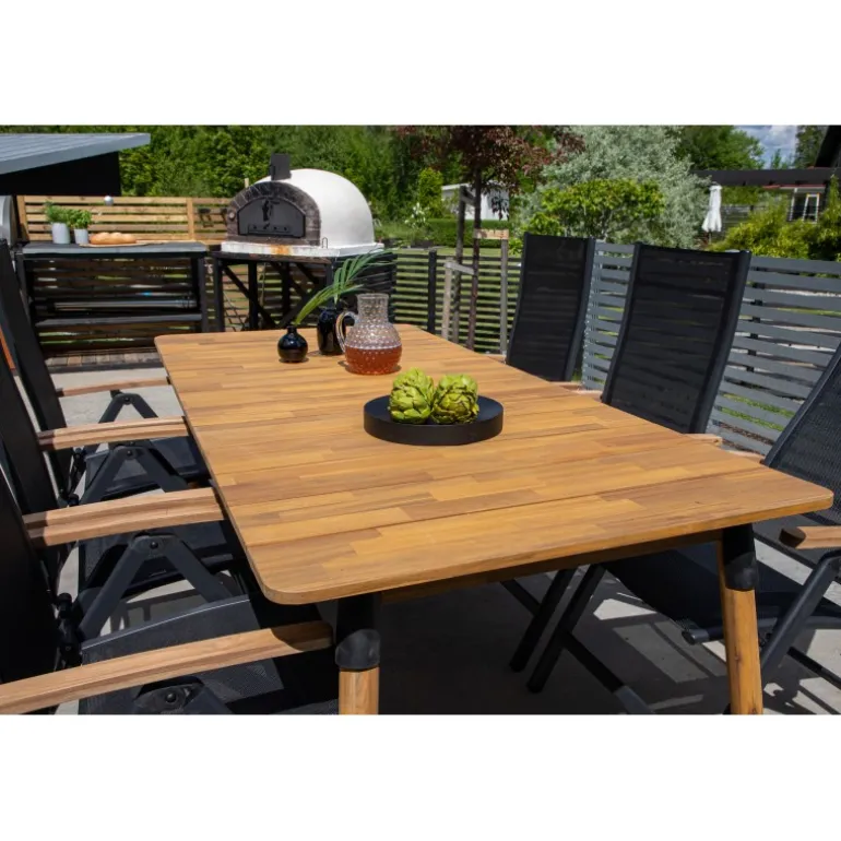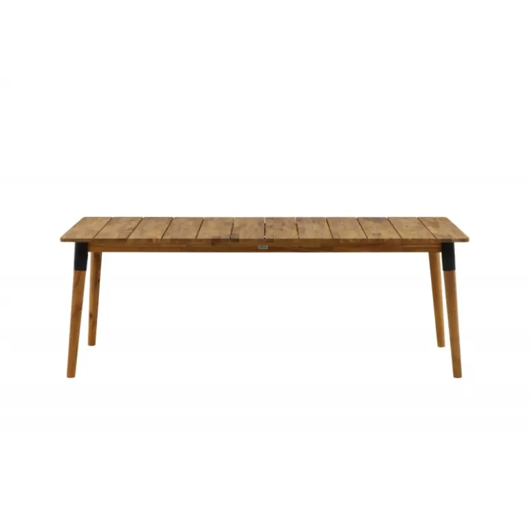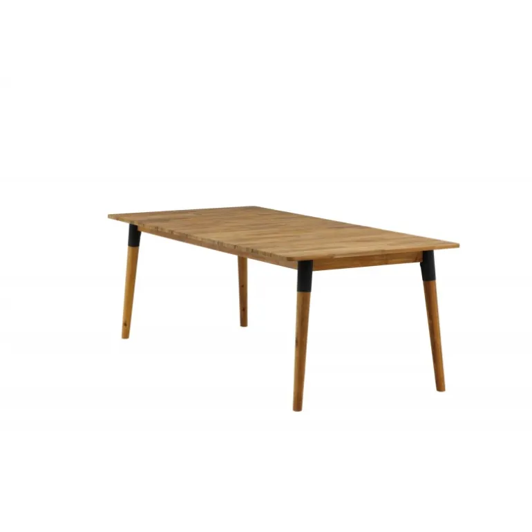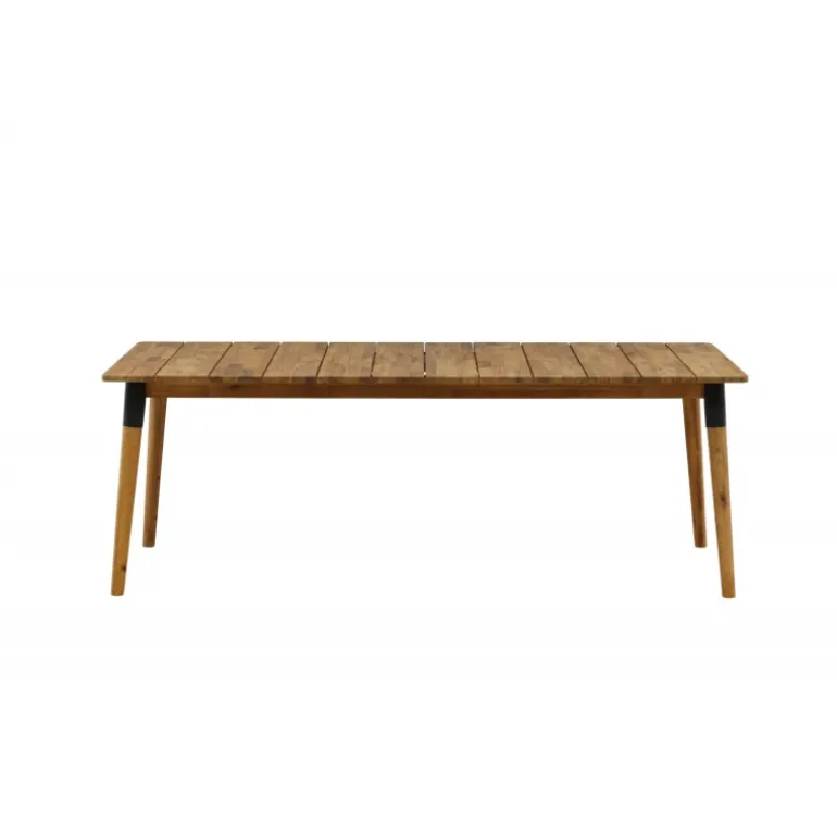 Julian, et rektangulært og smagfuldt spisebord med plads til mange. Bordet er lavet af brun akacie med stilfulde sorte detaljer, der giver bordet en flot kant. Inviter familie og venner til mange vidunderlige udendørs middage fremover! Vedligeholdelsesråd: For at dine udendørsmøbler i akacie/hårdt træ bevarer deres finish, bør de behandles med olie. Da træet ikke er naturligt fedtholdigt, skal det olieres lidt nu og da, også i løbet af sæsonen. Nyindkøbte møbler bør mættes med olie; påfør flere lag efter hinanden, så der absorberes maksimalt med olie. Tør det overskydende af.