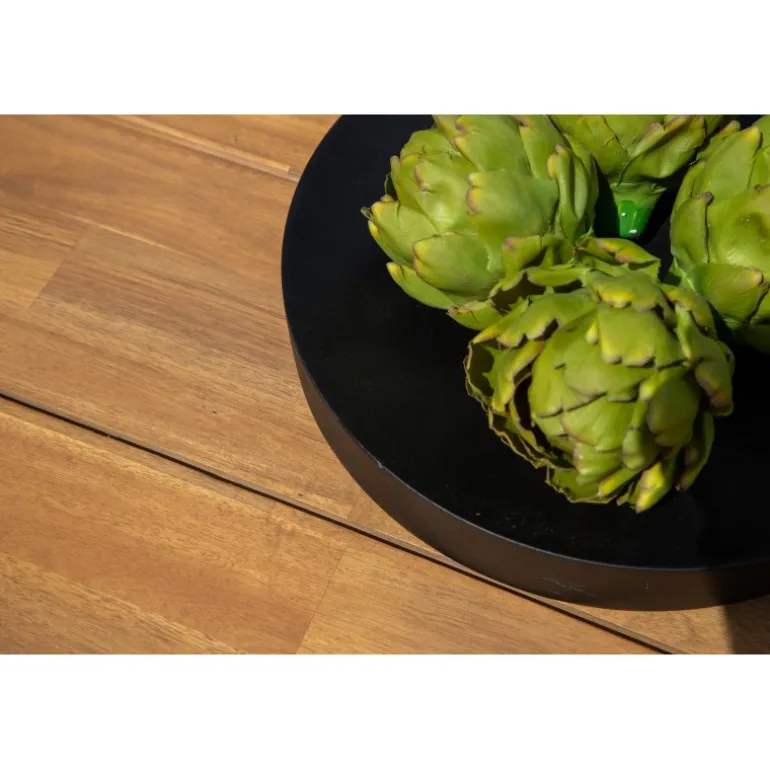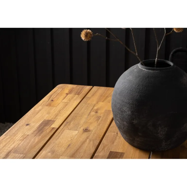 - Materiale: Lavet af brun akacie med sorte stål detaljer.