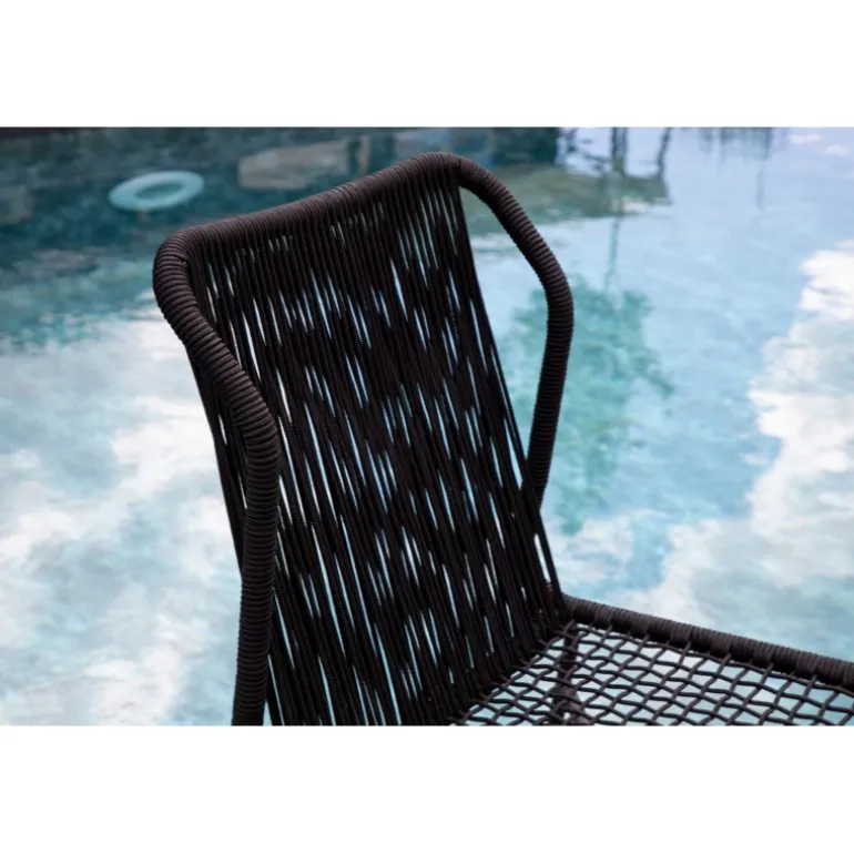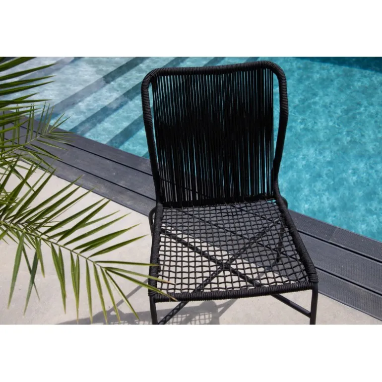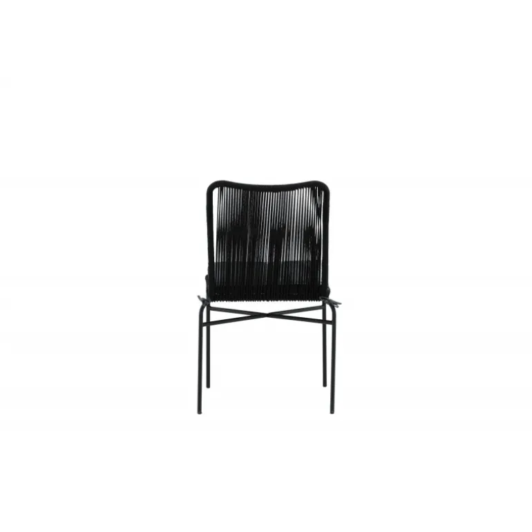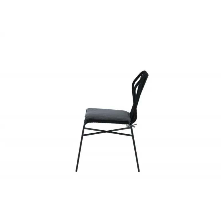 Julian spisestol er en stilfuld og robust stol, der tilføjer et ekstra touch til din udendørs indretning. Lavet af holdbart sort reb og aluminiumsramme, passer denne stol perfekt sammen med både sorte og træfarvede møbler. Stolen er stabelbar, hvilket gør den praktisk og pladsbesparende. Nyd udendørslivet denne sommer med Julian spisestol. Vaskeanvisning: Vores reb er lavet af kvalitets-spundet polyester, der er let at rengøre. Brug sæbe og vand til rengøring og lad tørre i luften. Til sværere tilgængelige områder kan en lille børste anvendes forsigtigt. Brug aldrig højtryksrenser eller stærke kemikalier på rebet.