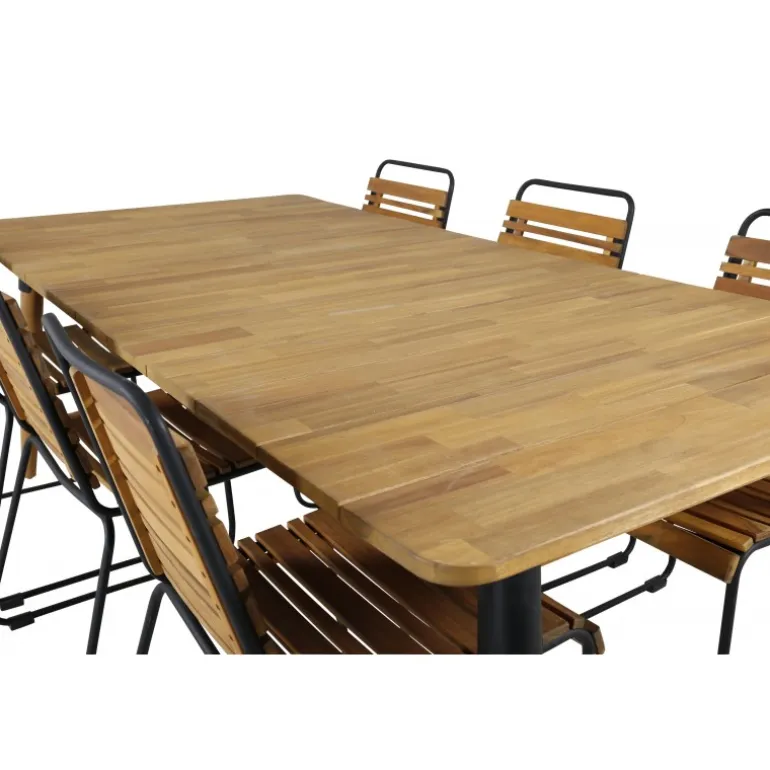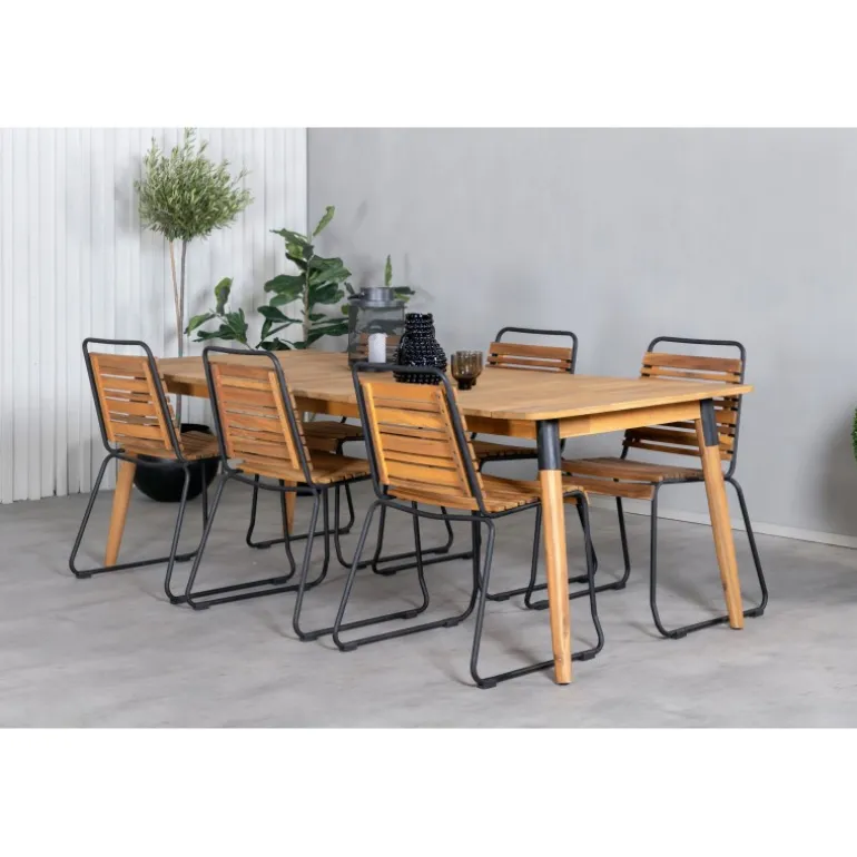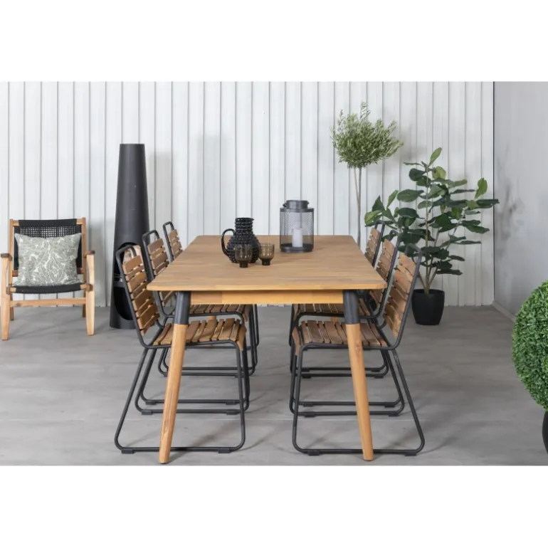 Hvad mere kan man ønske sig end en Loungesæt – Havemøbelsæt, der både er trendfast, praktisk og har plads til alle ens kære? Det er præcis, hvad denne kombination i klassisk trælook tilbyder! Spisebordet Julian i smuk akacietræ sammen med vores dekorative spisestole i serien BoIS. Udvid dine middagsinvitationer og nyd dejlige sommeraftener sammen på terrassen!