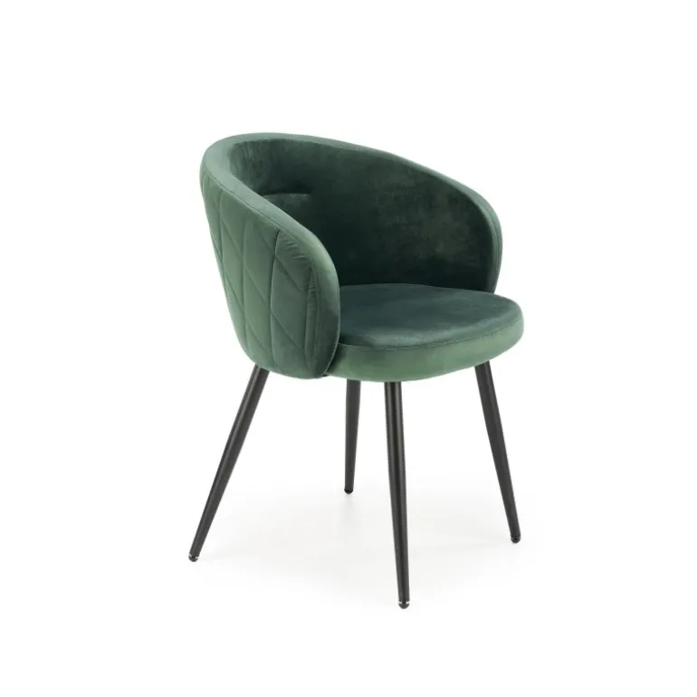 Oplev K430 Spisebordsstolen i en sofistikeret mørkegrøn farve. Denne stilfulde Spisebordsstol kombinerer elegant design med høj komfort, perfekt til både spisebordet og kontoret. Spisebordsstolen er fremstillet af blødt fløjlsstof og pulverlakeret stål, hvilket sikrer både holdbarhed og æstetik. Med dimensioner på 61/54/77/48 cm passer den let ind i forskellige rum og indretninger.