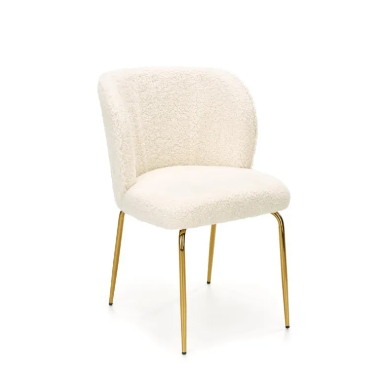 - Materiale: Blødt bouclé-stof og stærkt kromstål