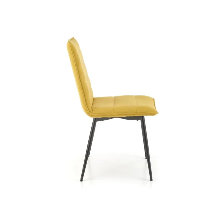 K493 Spisebordsstol i sennepsfarvet stof med pulverlakeret stål er den perfekte blanding af stil og komfort til dit hjem. Med sin moderne og elegante design passer den perfekt ind i ethvert rum. Spisebordsstolen er robust og holdbar, hvilket sikrer langvarig brug. Nyd den ergonomiske siddeoplevelse, som denne Spisebordsstol tilbyder.