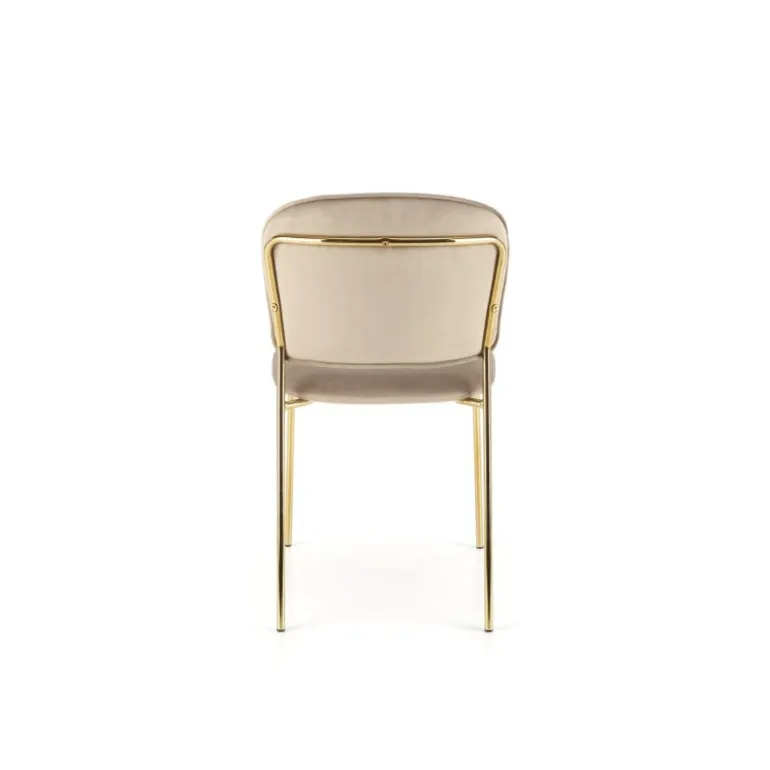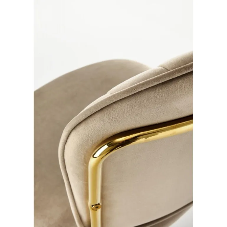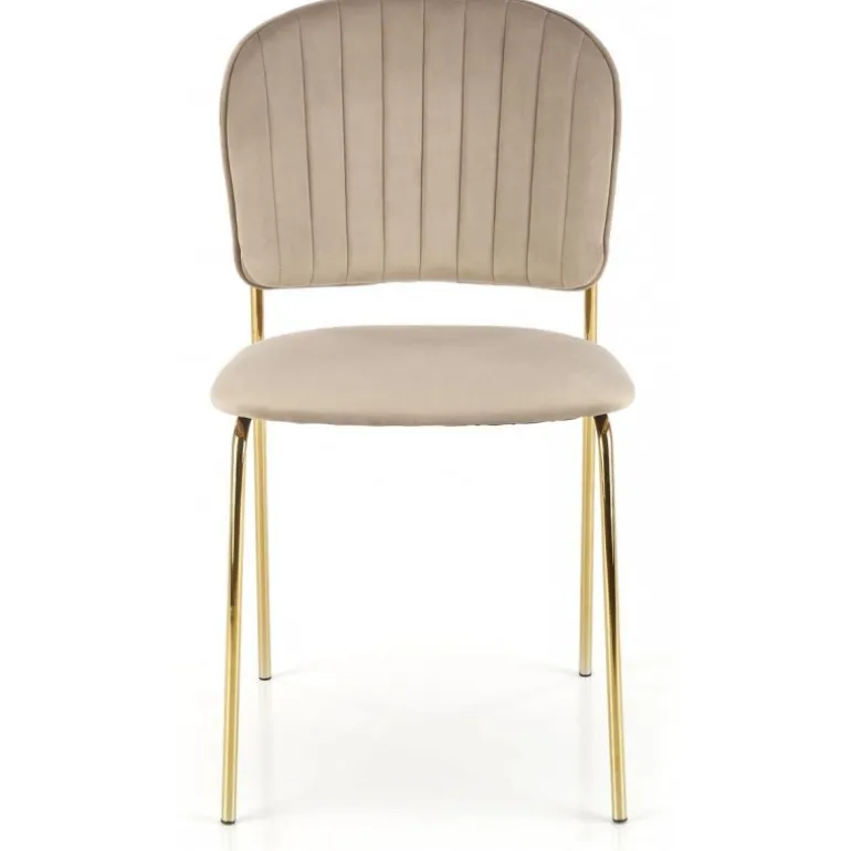 - Moderne design: Elegant beige velourstof kombineret med kromstål.