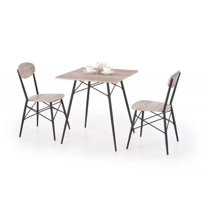 Oplev den perfekte kombination af stil og funktionalitet med vores KABIR firkantede spisebordssæt med 2 Spisebordsstole. Dette moderne sæt, fremstillet af lamineret MDF og pulverlakeret stål, er designet til at passe ind i enhver spisestue. Bordpladen i san remo eg og Spisebordsstolens Sorte ben giver et elegant og tidløst udseende, der vil forbedre din hjemmets æstetik. Med dimensionerne 70/70/75 cm er dette sæt ideelt til mindre rum, hvilket gør det både pladsbesparende og praktisk.
