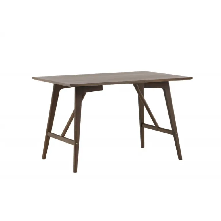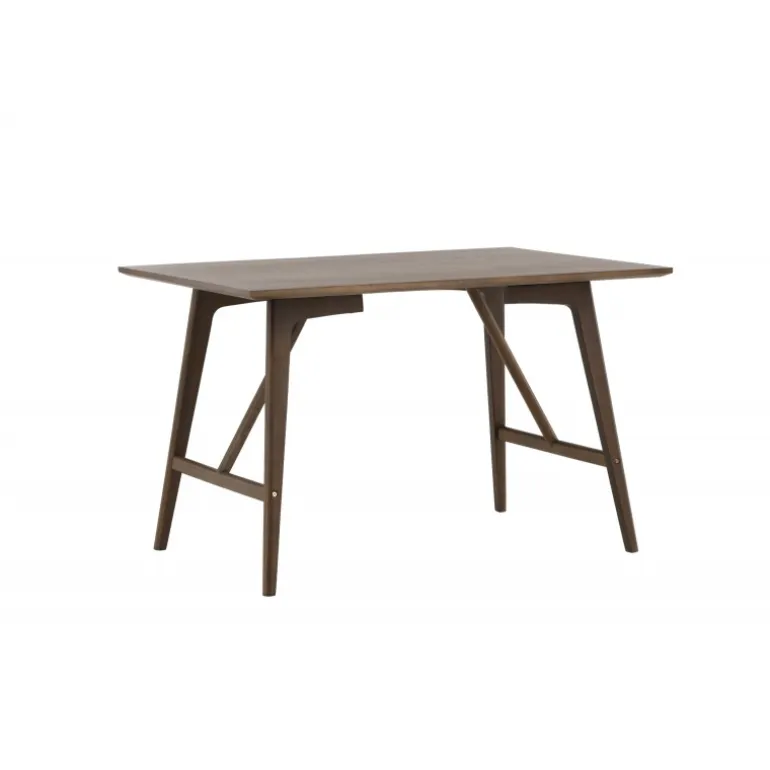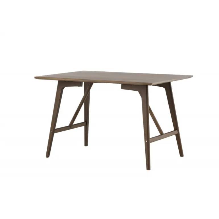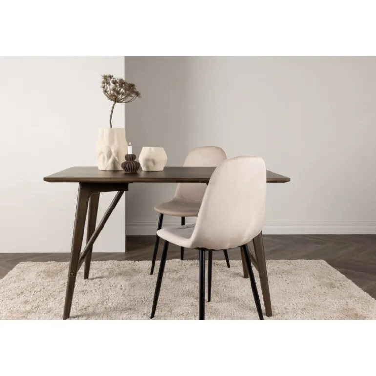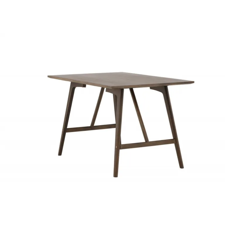 Kaseindon Spisebord har en moderne valnøddefarvet farve, der passer perfekt til det moderne hjem. Den rektangulære bordplade har en mat finish, og benene er let skrånende med en stabiliserende ramme, lavet af MDF og gummitræ. Match med et par komfortable spisebordsstole, og du har en komplet Spisebordssæt til dit hjem!