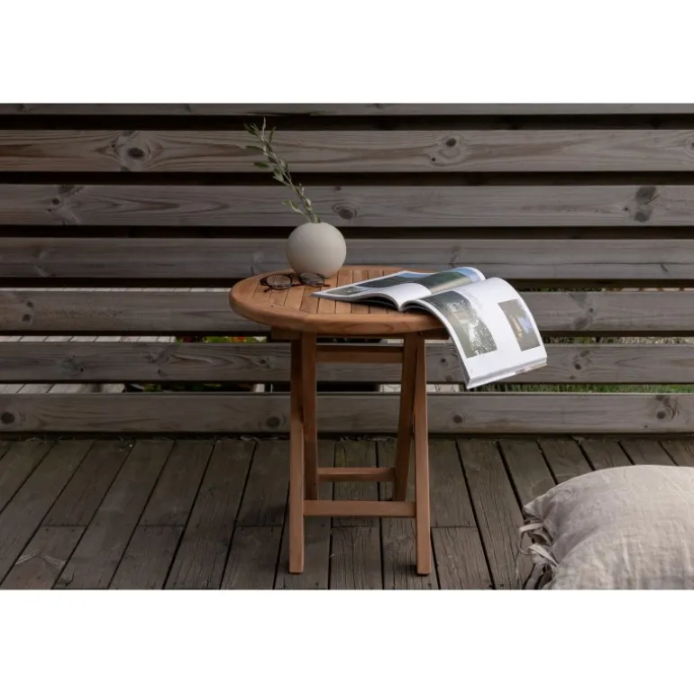 Det perfekte cafébord til sommermorgenmad eller solrige kaffepauser. Kenya er et rundt cafébord i stilfuld teak. Lige så praktisk som iøjnefaldende, giver bordet et indbydende indtryk og vil helt sikkert pryde sommeraftenerne. Følg vores vedligeholdelsesråd for tips til, hvordan du får dit bord til at holde længe. Vores teakmøbler er produceret af certificeret teak, der dyrkes med henblik på møbelproduktion og ikke fra udsatte regnskove. Som en af de mest holdbare træsorter indeholder teak meget olie, hvilket forhindrer materialet i at revne. Da træsorten naturligt indeholder meget olie, behøver møblerne ikke at blive imprægneret så ofte.