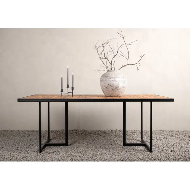 Spisebordet Khung i brun akacie med en dekorativ ramme og understel i sort stål. Et spisebord, der passer lige så godt i haven som på terrassen. Nyd sommerens vidunderlige øjeblikke sammen! Læs mere under vores vedligeholdelsesråd om, hvordan du bedst tager vare på dit bord.