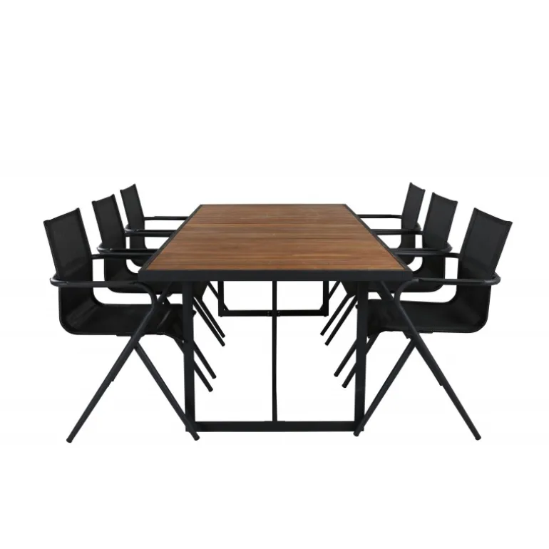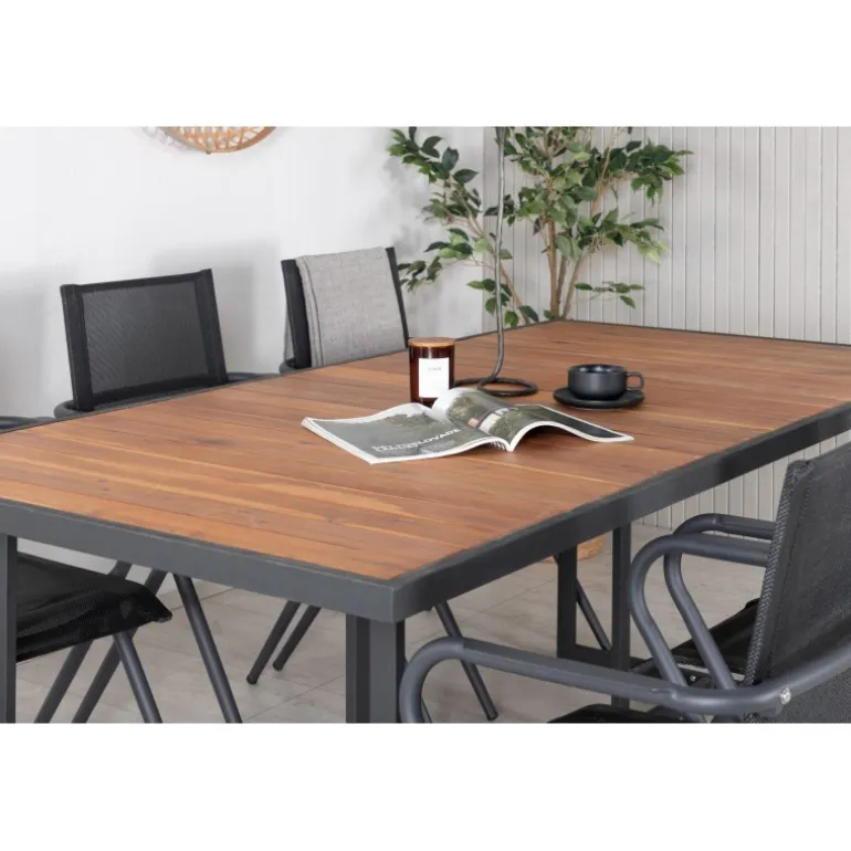 - Holdbare materialer: Fremstillet af akacietræ, aluminium, stål og textilene for langvarig holdbarhed.