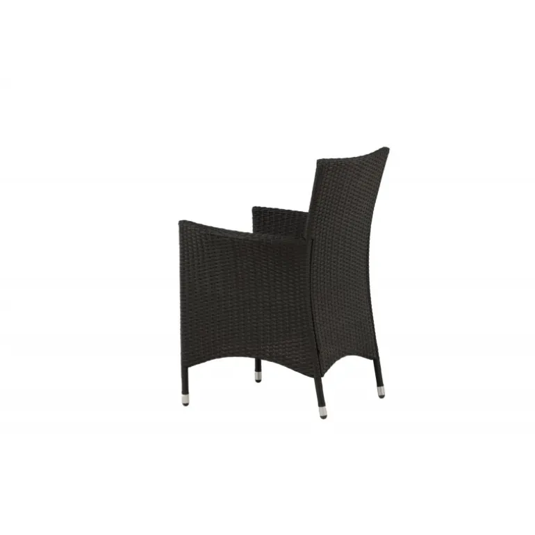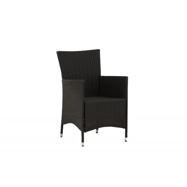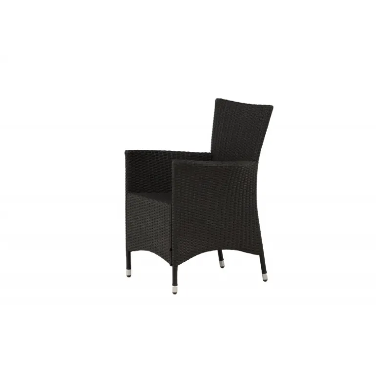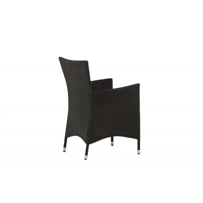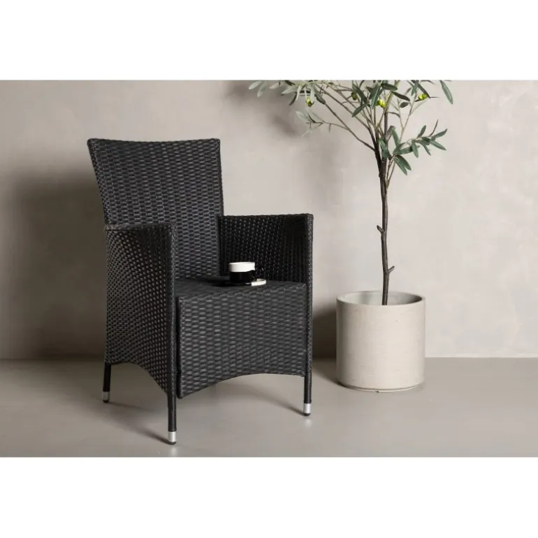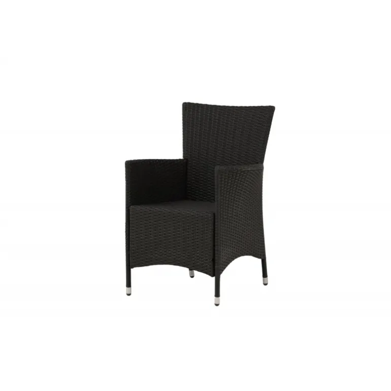 Sid behageligt denne sommer i vores trend-sikre stole fra Knick-serien! En klassisk armstol i sort kunstig rattan – let at matche og tidløs farve. Her får du virkelig en robust stol, hvor du kan sidde komfortabelt i flere timer. Forlæng middagsinvitationerne og nyd varme aftener med venner i en hyggelig Loungesæt – Havemøbelsæt. Suppler stolen med et af vores stilfulde spiseborde til udendørs brug. Stolen er stabelbar. Plejeråd: Konstrite er et plastmateriale, der er perfekt til vores skandinaviske klima. Materialet er UV-resistent og kan modstå vejr og vind. At det er UV-resistent betyder, at møblerne ikke falmer, men vi anbefaler altid at opbevare møblerne under møbelbeskyttelse eller andet tørt og køligt for at forlænge levetiden.