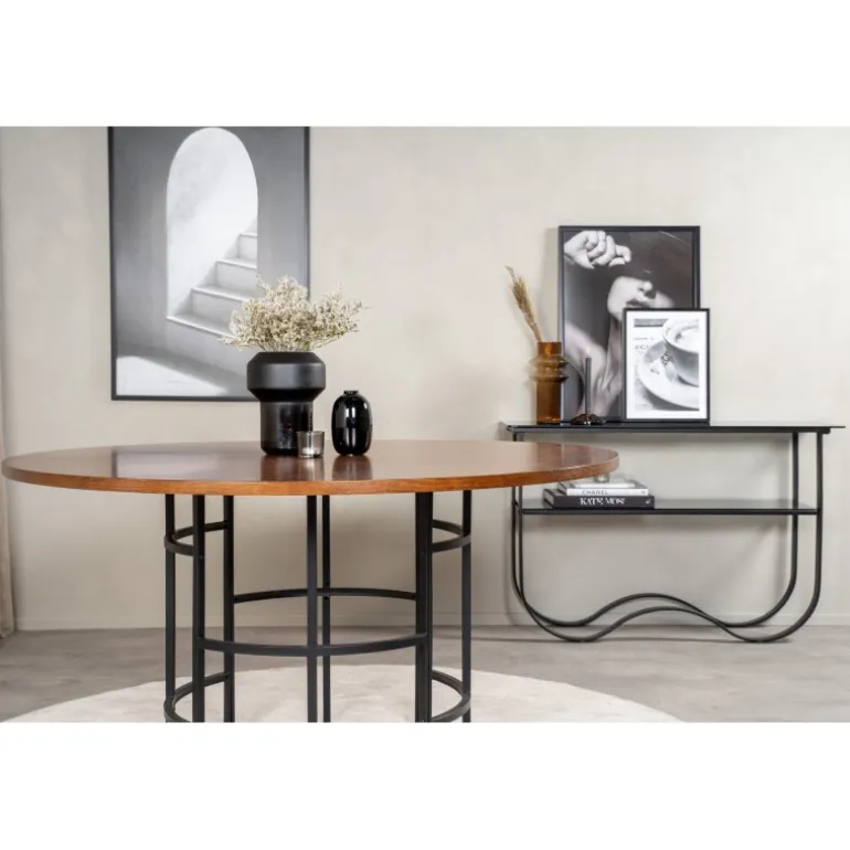 Skab en moderne blikfang i dit hjem med et rundt København spisebord med en smuk brunfarvet bordplade i MDF og et dekorativt, cylindrisk stel i sort metal. Et rundt spisebord er perfekt, hvis du ønsker at skabe en social og indbydende atmosfære i dit hjem. Indret køkkenet eller stuen med et iøjnefaldende bord, hvor ingen ender på kanten. Følg vores bedste vedligeholdelsestips, og du får et møbel, der holder i lang tid! Plejeråd: MDF-plader, der er malet eller lakeret, er følsomme over for ridser og skader. Vær derfor forsigtig med pladerne for at undgå dette. Overflader malet med lak med farvepigment eller maling har en pigmentering, der giver en ikke-dækkende gennemsigtig overflade.