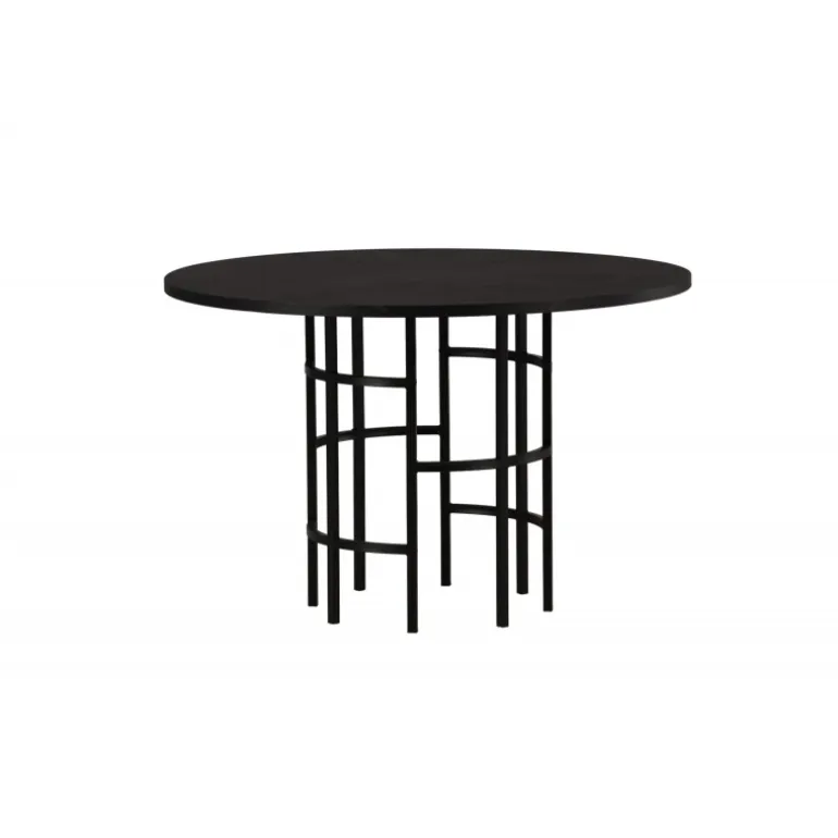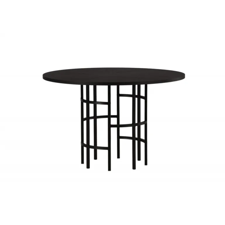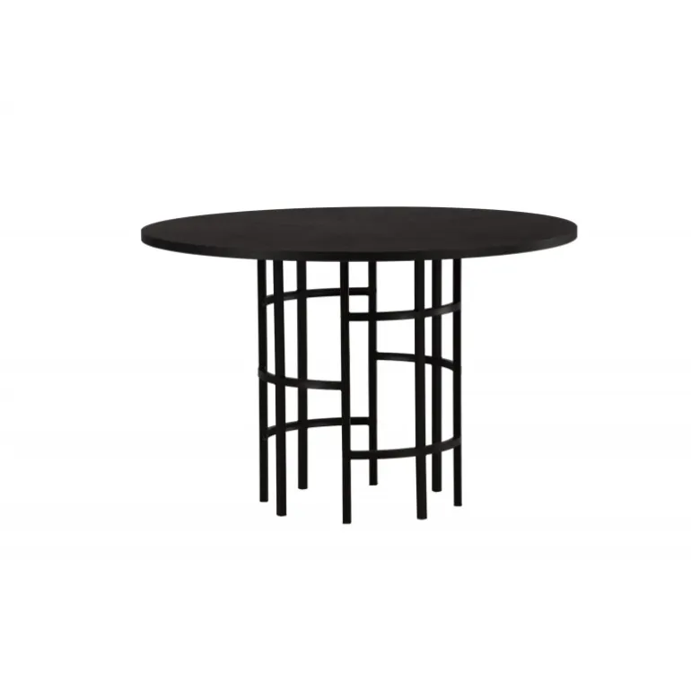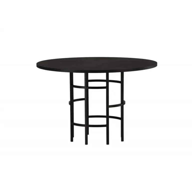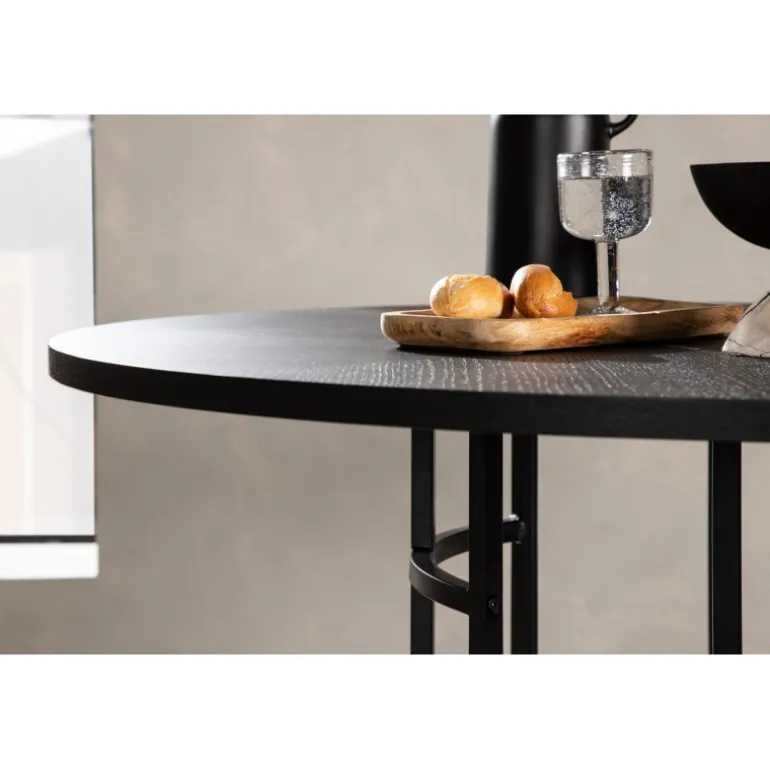- Elegant design: Rundt spisebord med sort MDF bordplade og sort metal underdel.