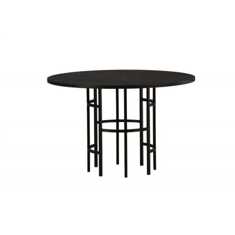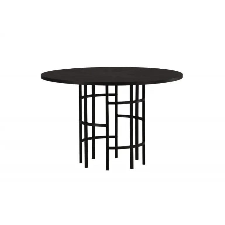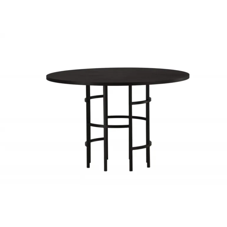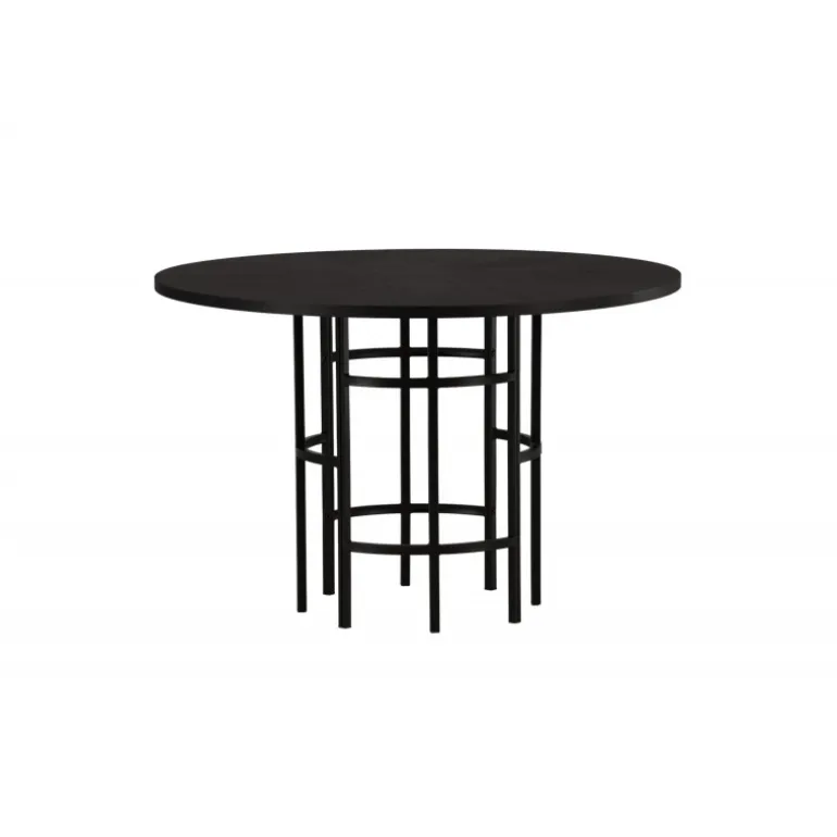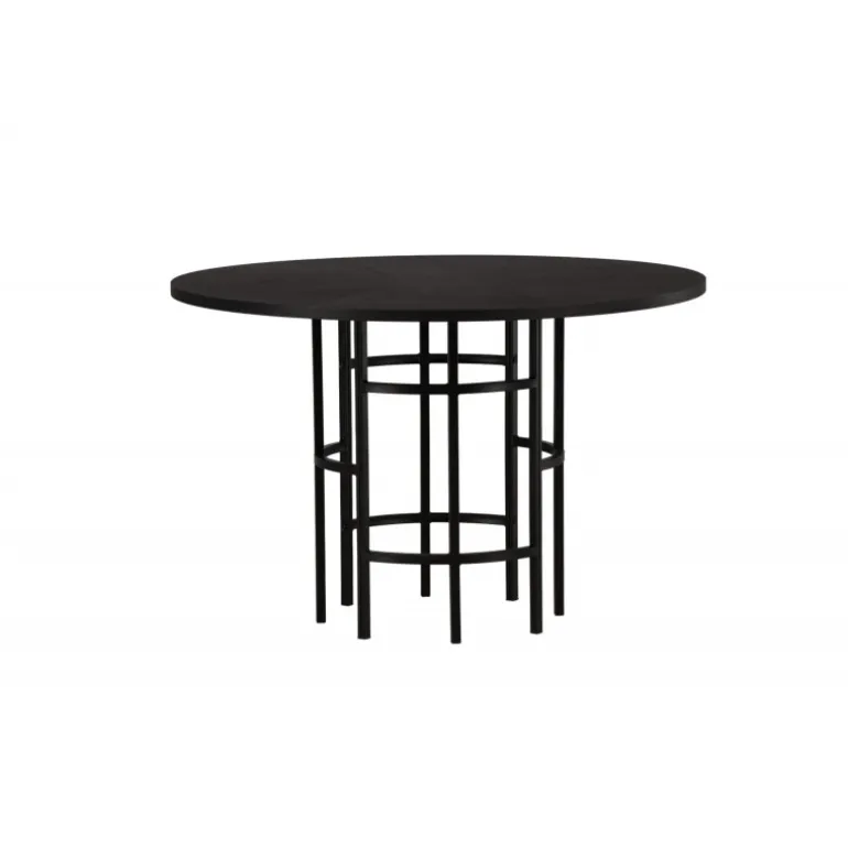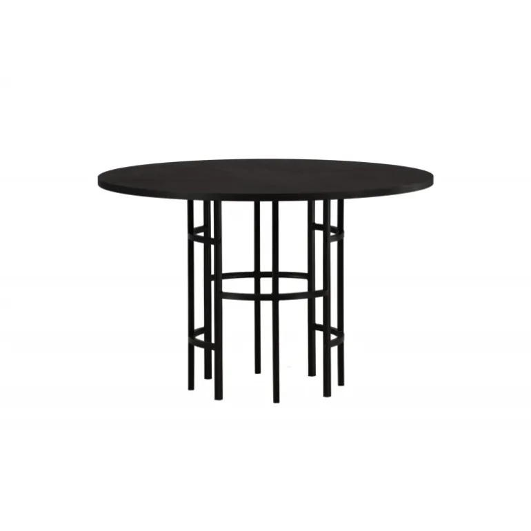 - Elegant design: Rundt spisebord med sort MDF bordplade og sort metal underdel.
