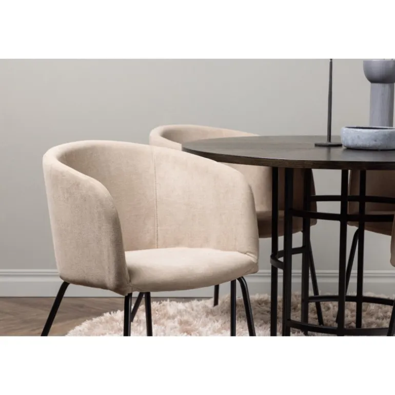 - Komfortable Stole: Fuldt polstret design med polyesterlinned og sorte jernben.