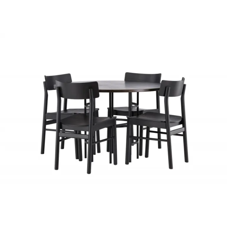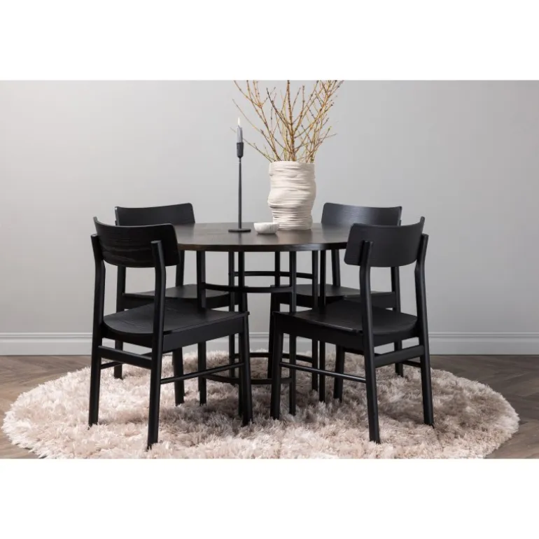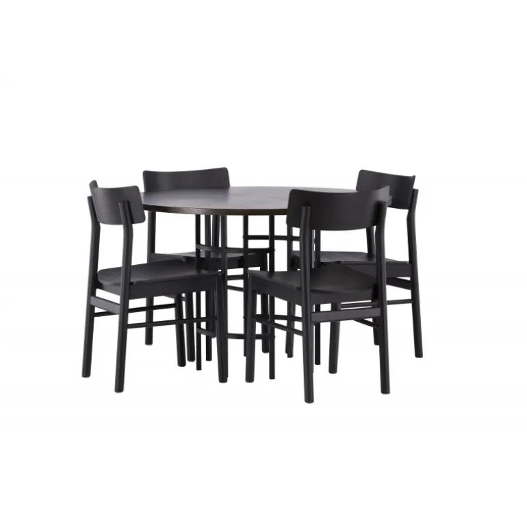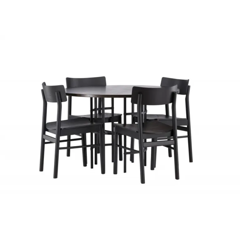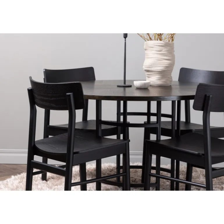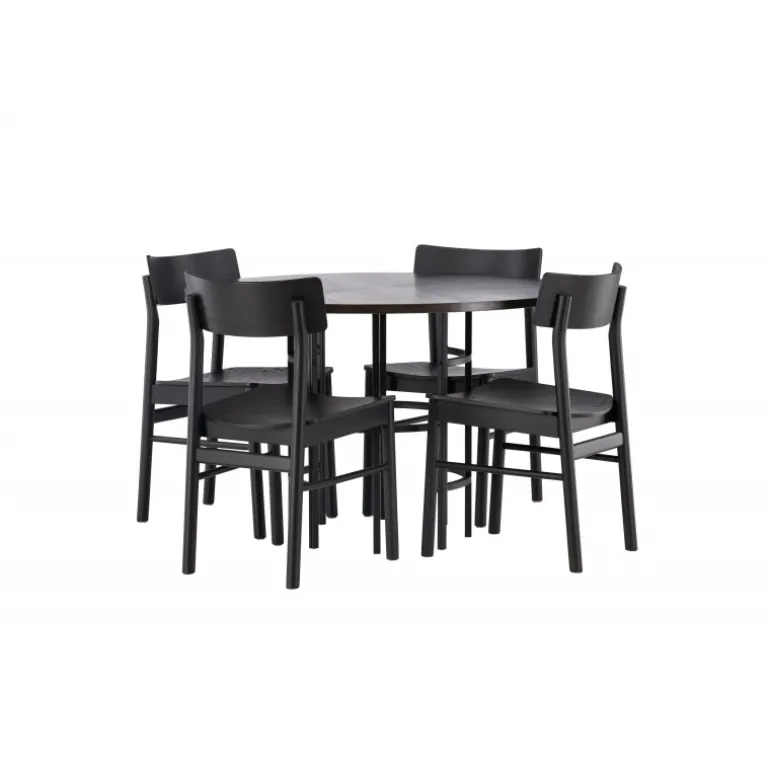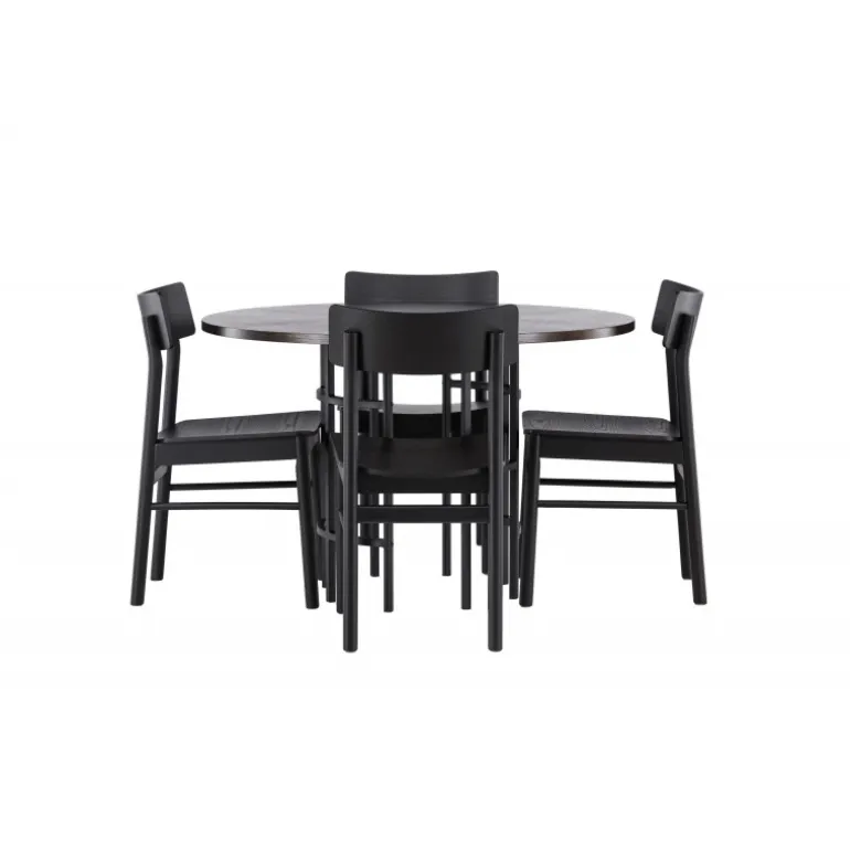 Udforsk vores elegante spisebordssæt med København bordet og Montros stolene – den perfekte kombination af stil og funktionalitet til dit køkken eller spisestue. København bordet har en generøs diameter på 115 centimeter og er fremstillet med MDF-materiale og robuste stålben, hvilket sikrer stabilitet. Bordpladens mørkebrune farve skaber en varm og indbydende atmosfære, mens de sorte ben tilføjer et strejf af modernitet og stil. Montros stolene supplerer bordet perfekt med deres enkle og elegante design. Lavet af birketræ og i en sofistikeret sort farve, giver de hele spisebordssættet en tidløs og elegant følelse. Disse stole tilbyder også en komfortabel siddeoplevelse til lange og afslappede måltider med familie og venner. Uanset om det er en intim middag for to eller en festlig sammenkomst med venner, er vores spisebordssæt med København bordet og Montros stolene det perfekte valg til at skabe en indbydende og stilfuld atmosfære i dit hjem.