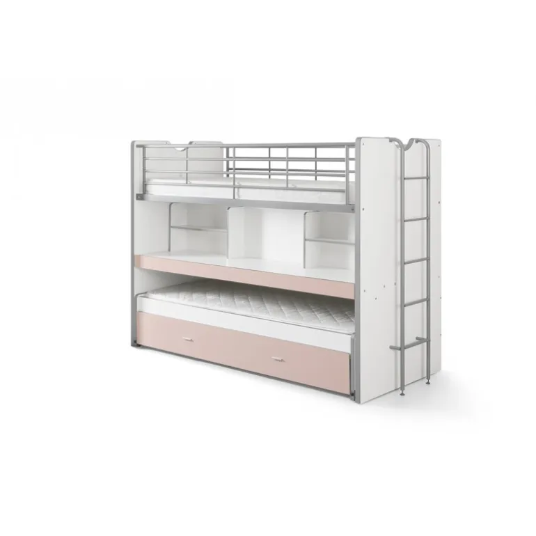 Køjeseng 90 x 200 cm med skrivebord – lyserød (Bonny)