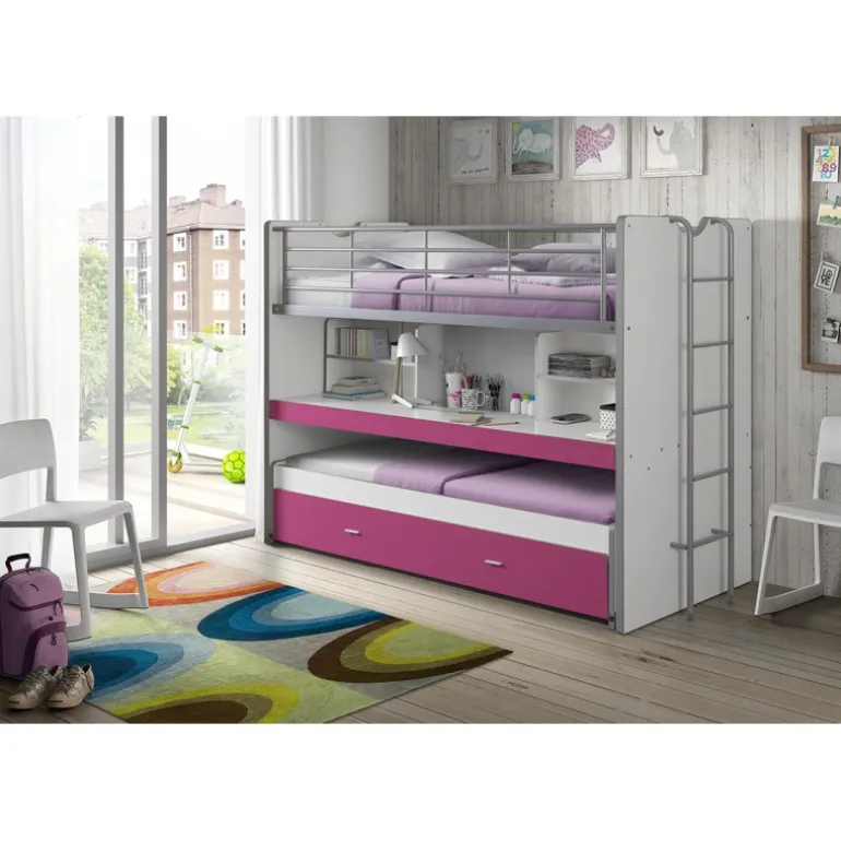 Køjeseng med skrivebord 90 x 200 cm – lyserød