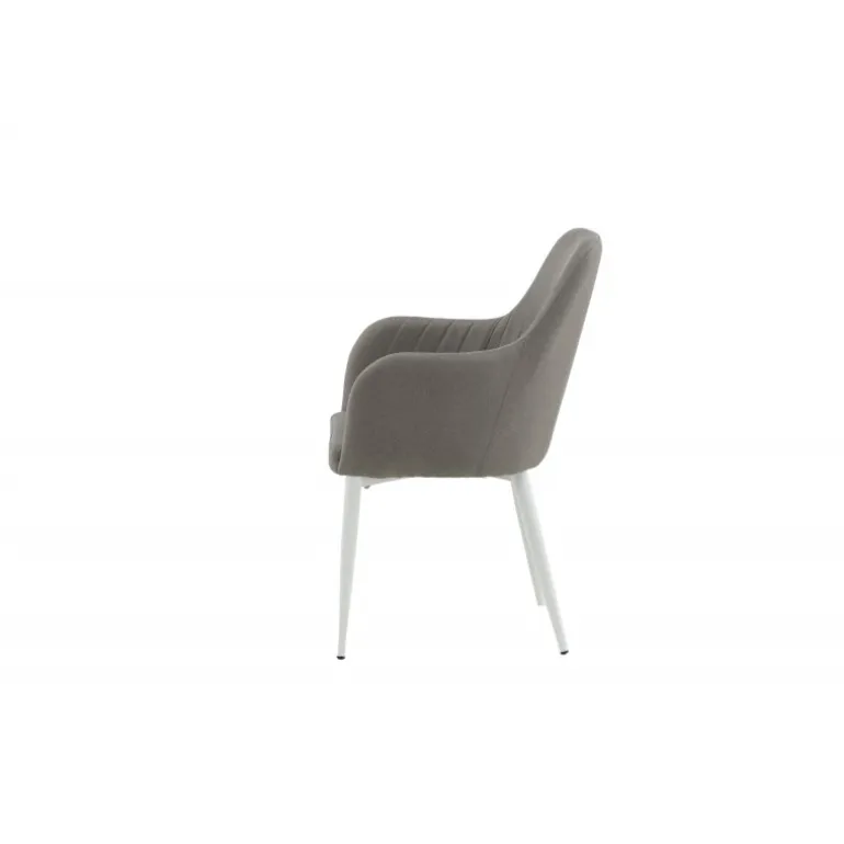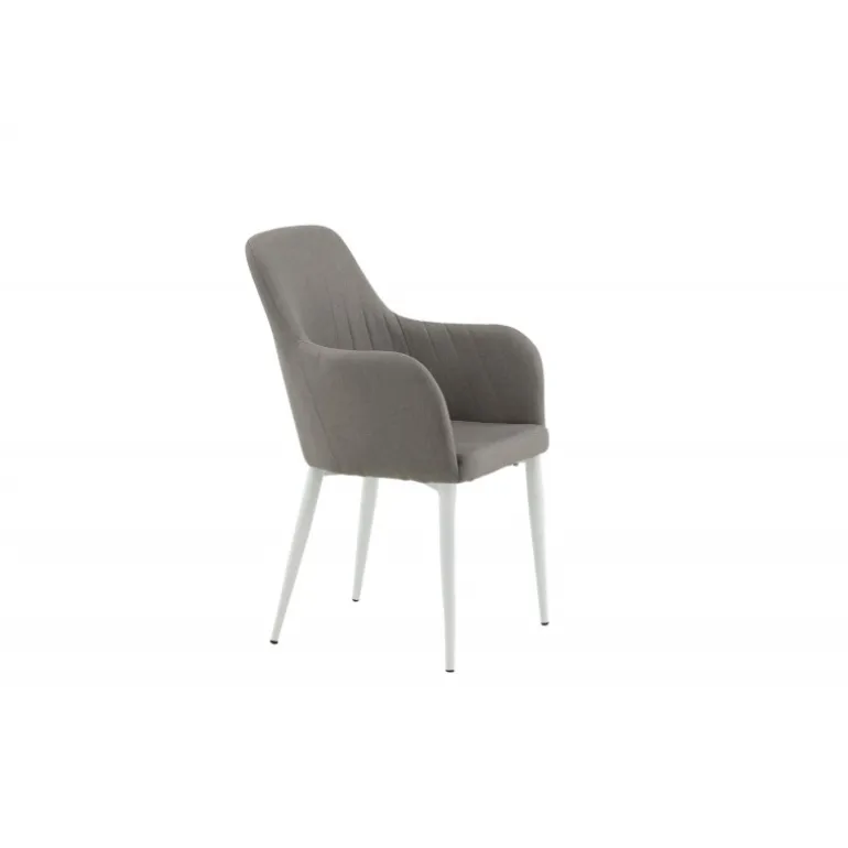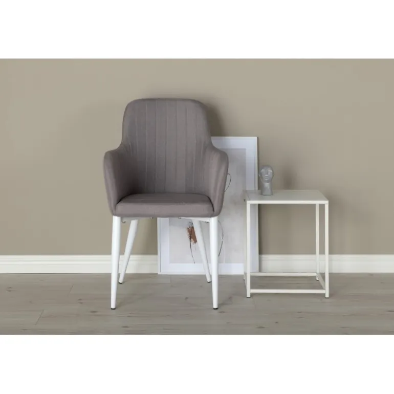 Sid komfortabelt og forbedr den behagelige atmosfære omkring spisebordet med en afslappende spisebordsstol fra Komfort-serien! Den har et robust fuldt beklædt design med ben i hvid pulverlakeret metal og ryg og sæde med integrerede armlæn i gråt polyester stof med behagelig siddekomfort. Dekorative syninger på indersiden af ryg og armlæn bliver en stilfuld detalje. Lettere samling kræves. Plejeråd: Brug tekstilspray til at imprægnere tekstilet, før du begynder at bruge det, det vil også gøre eventuelt snavs og pletter lettere at fjerne i fremtiden. Fjern pletter med det samme, gnid ikke, men forsøg at suge forsigtigt op med en klud.