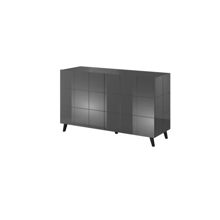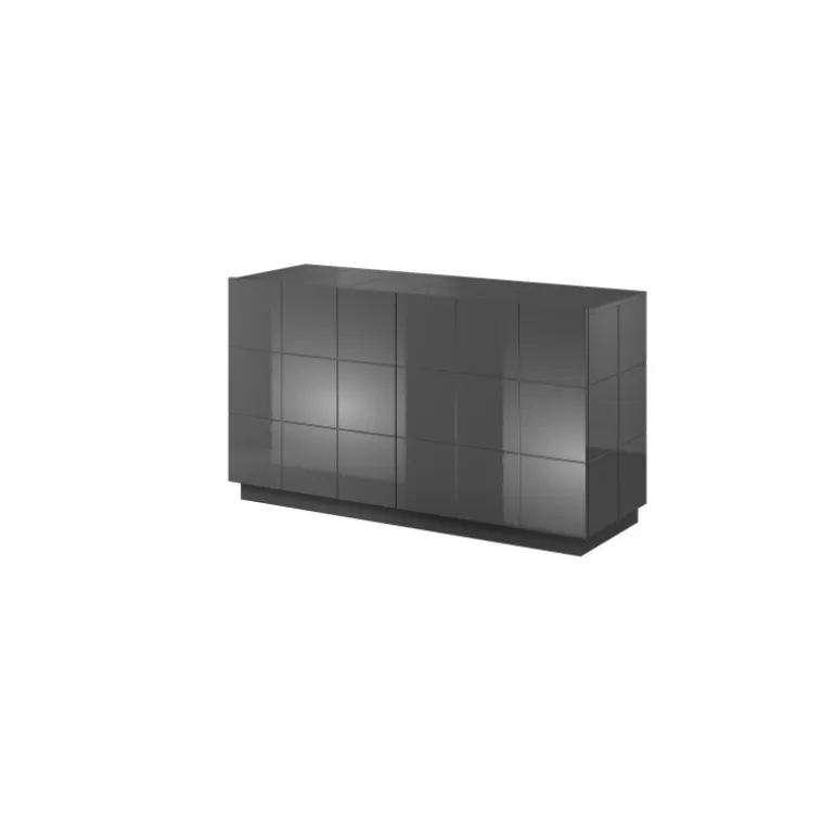 Oplev den ultimative kombination af stil og funktionalitet med vores kommode KOM2D REJA i grafit glans. Denne elegante kommode tilbyder rigelig opbevaringsplads og passer perfekt til ethvert moderne hjem. Med dimensioner på 80 cm i højde med ben og 75 cm uden ben, 138 cm i bredde og 45 cm i dybde, er den designet til at passe ind i både store og små rum. Kommoden er lavet af højglans MDF-spånplade på sider og top, hvilket giver et luksuriøst udseende. Frontene er også af højglans MDF-spånplade, og resten af elementerne er lavet af lamineret spånplade. Den innovative design uden håndtag, hvor frontene strækker sig over toppen, giver en ren og moderne æstetik. De Sorte plastikben eller plinten tilføjer stabilitet, mens LED-stripbelysningen (tilgængelig i hvid eller Blå) skaber en stemningsfuld atmosfære.