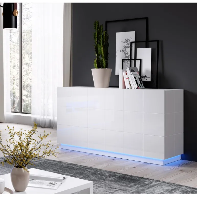 - Materiale: Glanspoleret MDF-spånplade til sider, top og fronter.