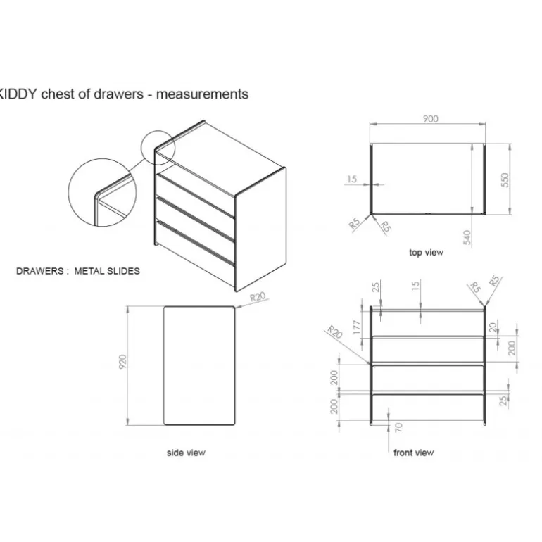 Kommode med 3 skuffer – Kiddy, hvid