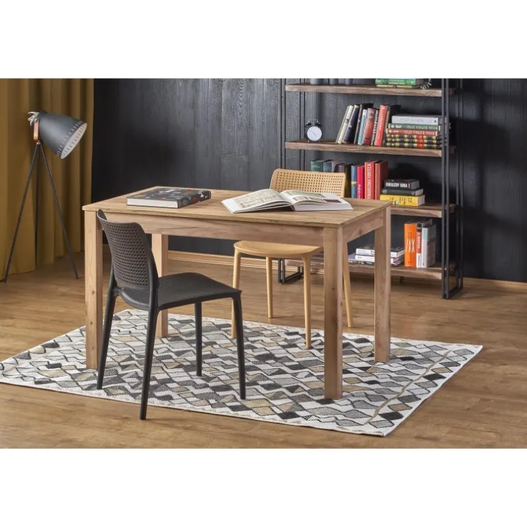 KSAWERY bordet i håndværk eg er den perfekte tilføjelse til dit hjem. Med dimensionerne 120/68/76 cm er dette bord ideelt til både små og store rum. Bordpladen er lavet af lamineret møbelplade med ABS-plast på kanterne, hvilket sikrer holdbarhed og et stilfuldt udseende. Benene er fremstillet af lamineret MDF, som giver stabilitet og styrke. Bordet kommer i den elegante farve håndværk eg, der passer til enhver indretning.